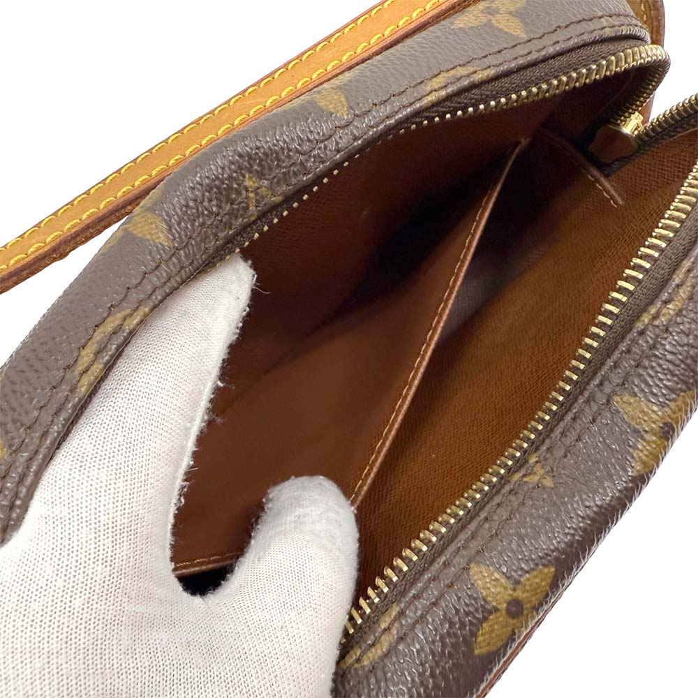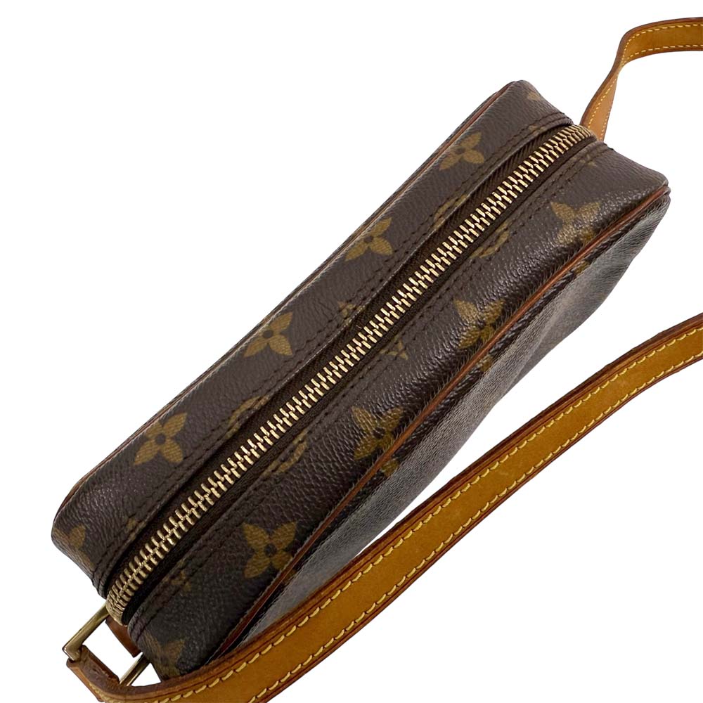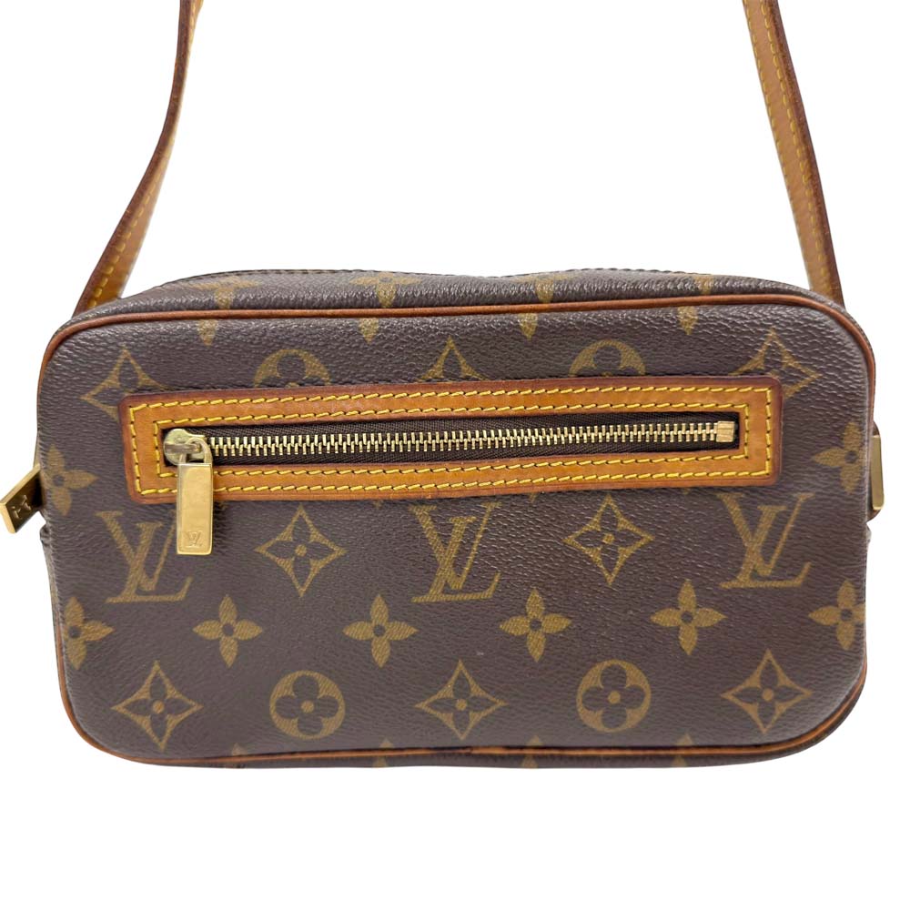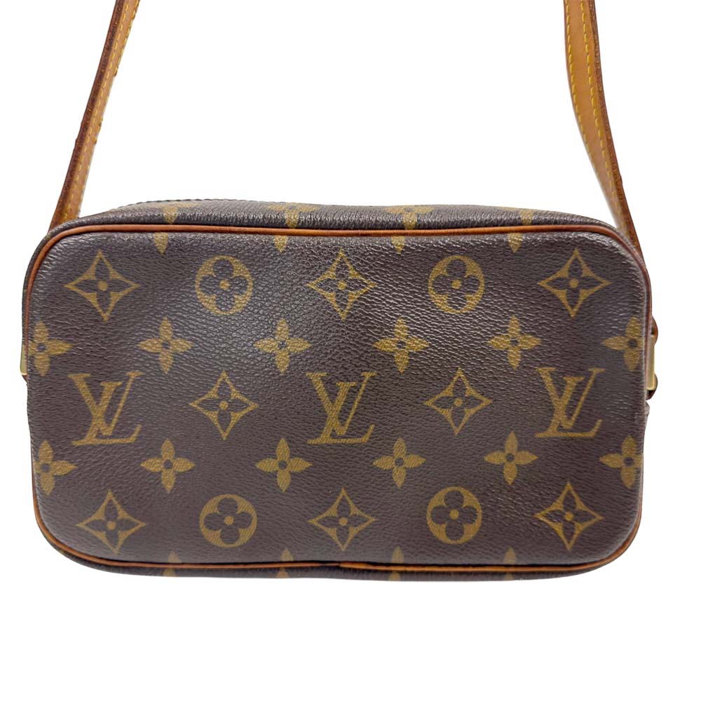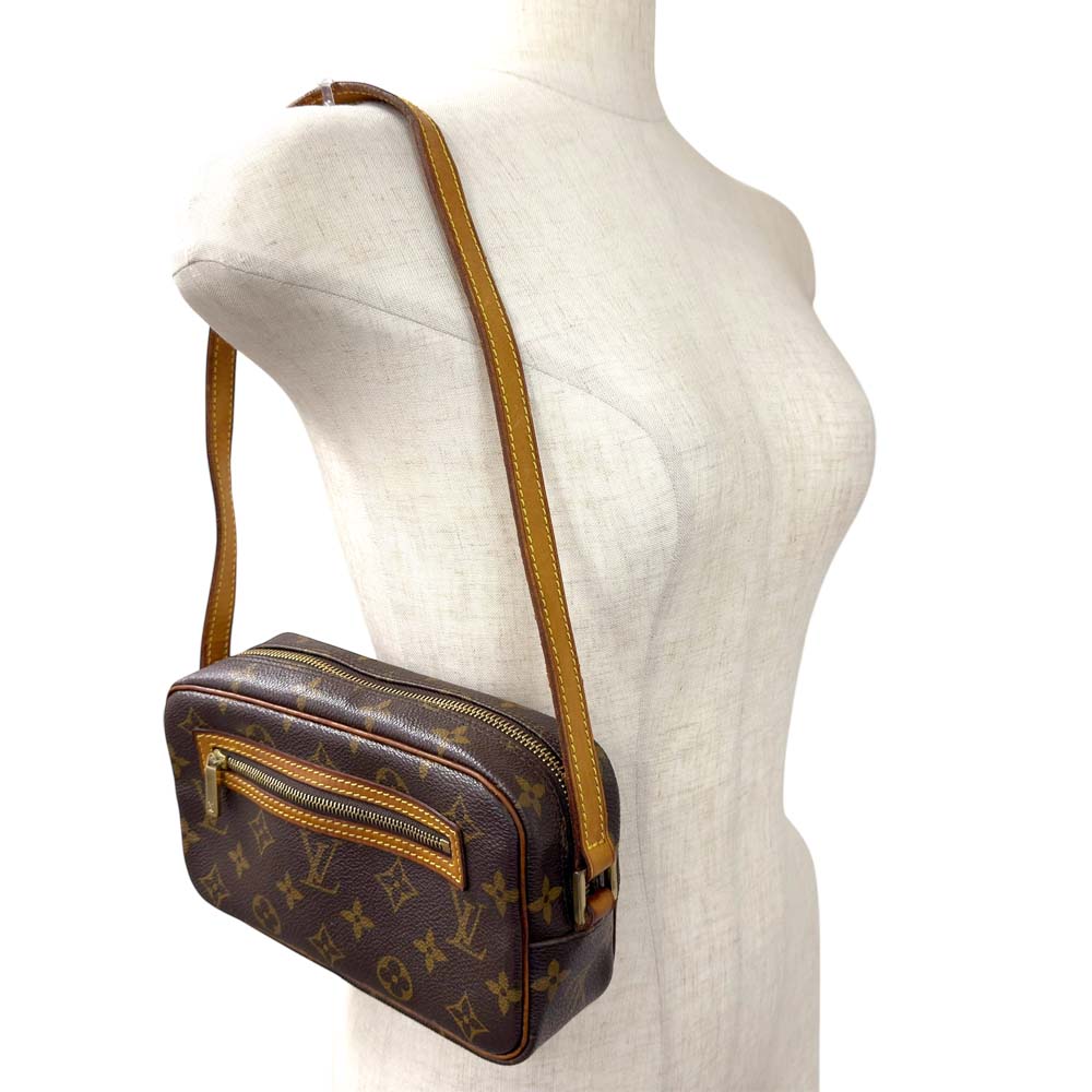 | 商品説明 | ポシェット・シテは、横長のフォルムが特徴的なショルダーバッグで、ルイヴィトンの定番素材であるモノグラム・キャンバスを採用しています。サイズは約W20cm×H12cm×D6cmとコンパクトながら、マチがしっかりあるため収納力が高く、長財布やスマートフォン、小物類をまとめて持ち運ぶのに便利です。外側にはファスナー付きのポケットがあり、貴重品の収納にも適しています。シンプルなデザインと実用性を兼ね備えているため、普段使いはもちろん、ちょっとしたお出かけにも最適です。 |
