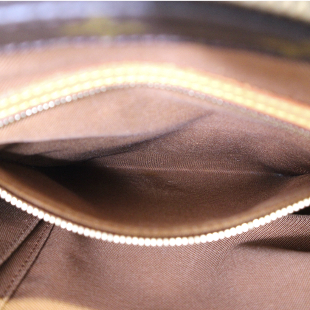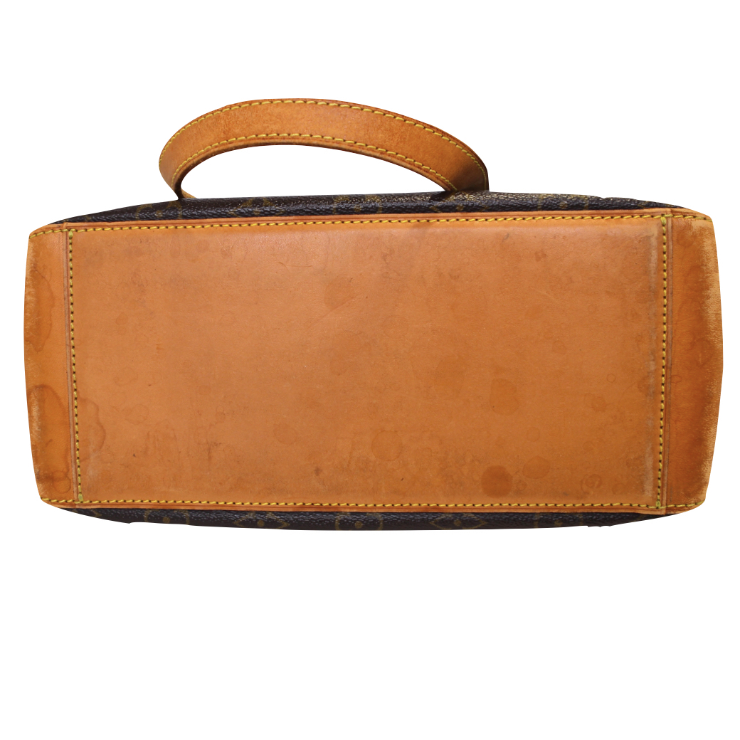 素材には耐久性に優れたモノグラム・キャンバスを採用し、傷や水に強く、長く愛用できるのもポイント。ハンドルにはヌメ革を使用しており、使い込むほどに飴色へと変化する経年変化も楽しめます。