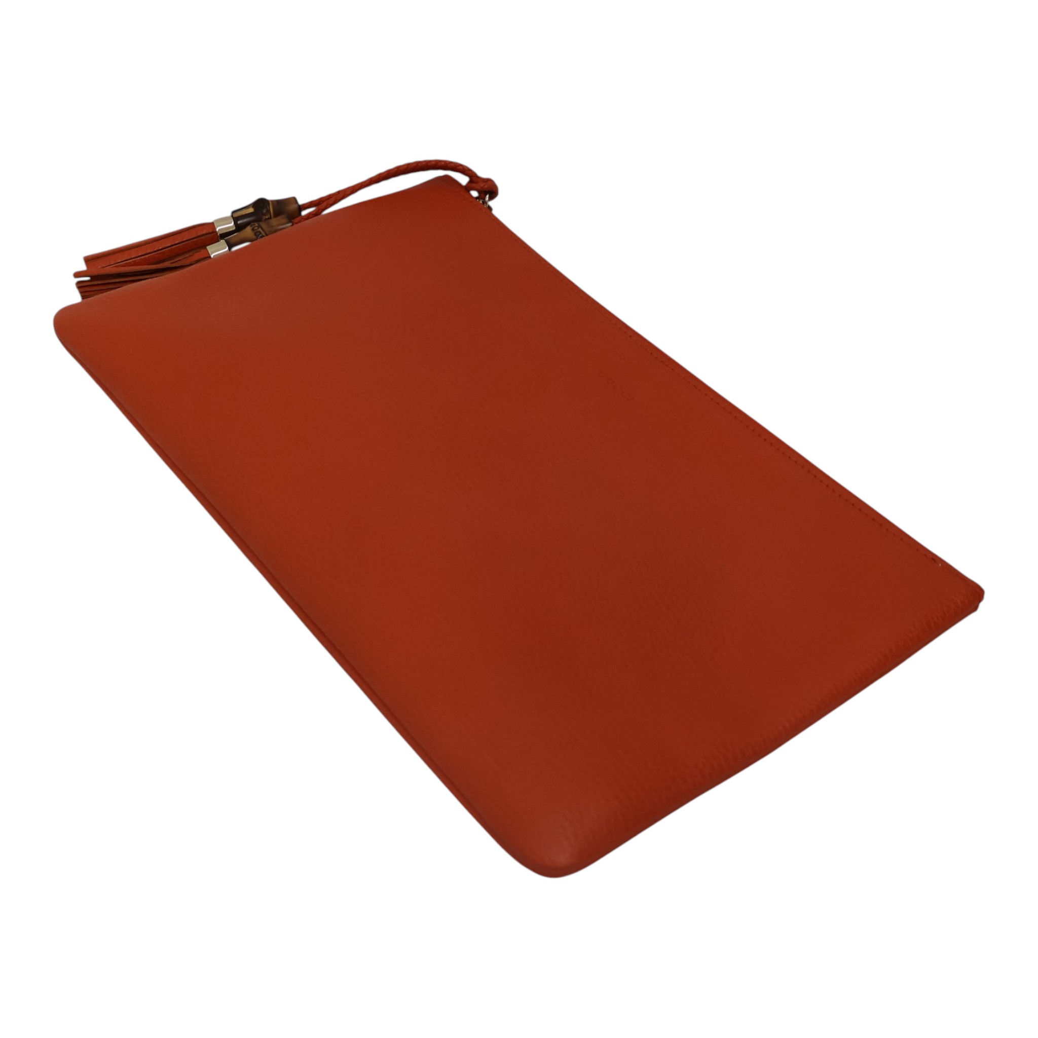 開閉金具部分にバンブーラインの特徴である竹金具が付いています。 バッグ全体はシンプルな無地でありながらハツラツとしたオレンジカラーが 目を惹きます。男女兼用にてお使いいただけるアイテムです。