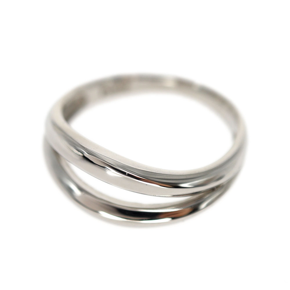 まるで重ね付けしているかのように見えるシンプルなデザインリングです。 やや曲線になっているので、上品で柔らかな印象を与えてくれます。