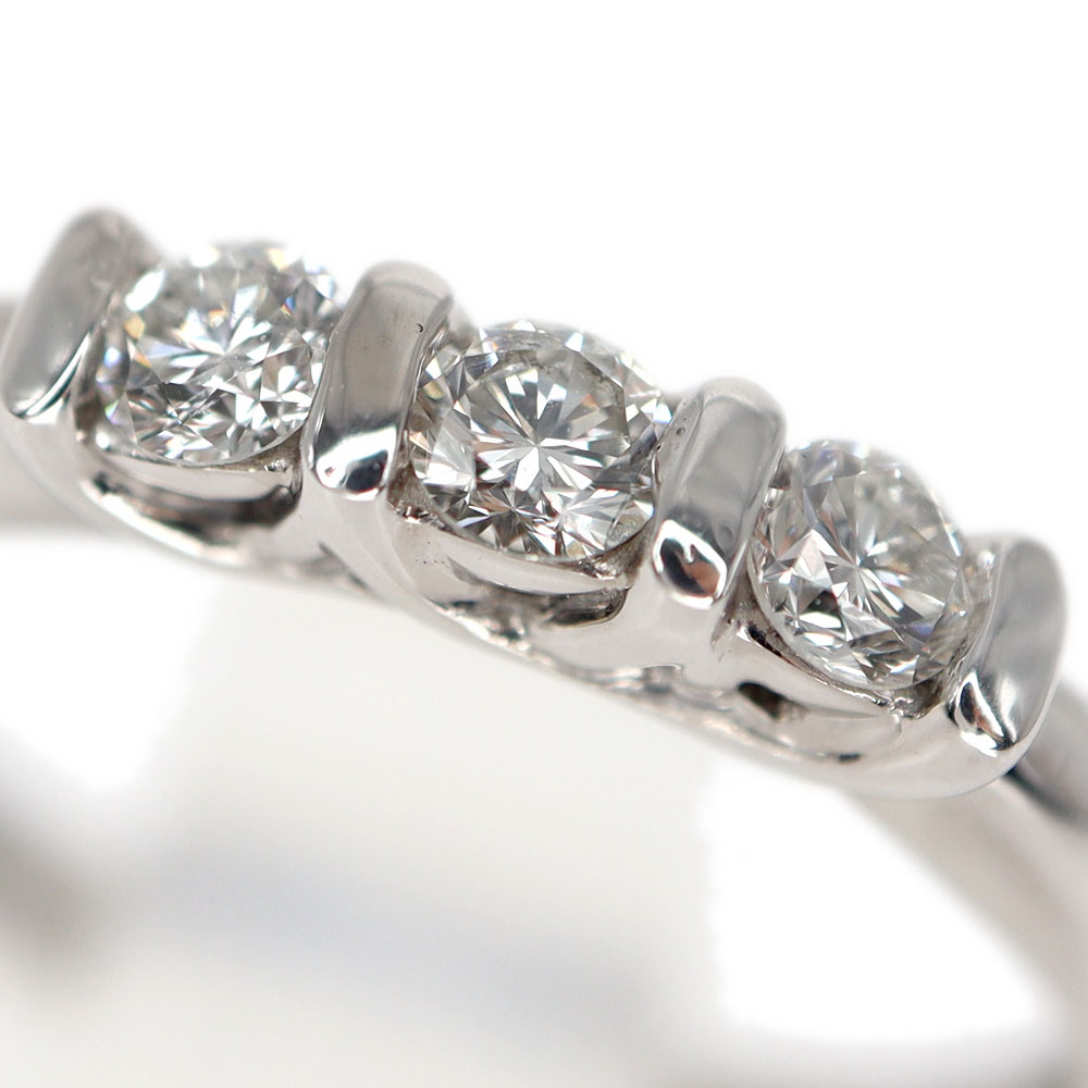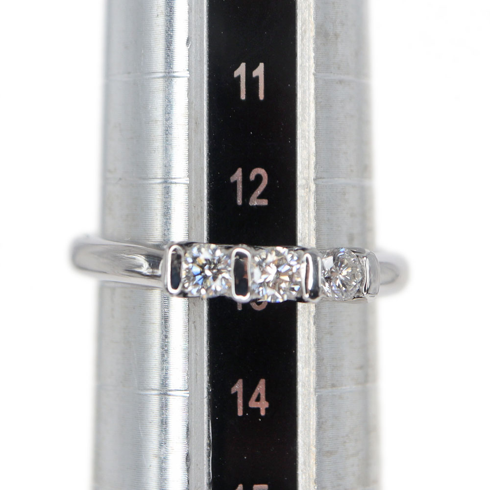 3つの連なったダイヤモンドがキラキラと輝く美しいリングです。 デザイン自体はシンプルなので、お手持ちのリングと重ね付けしてもお楽しみいただけます。