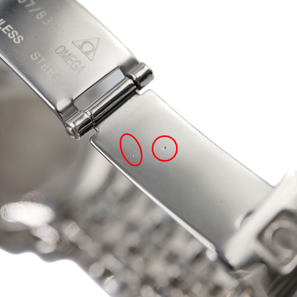 | 商品状態 | ■短針に一部腐食が見受けられます。 ■バックルに一部、打痕が見受けられます。 ■裏蓋に打痕が見受けられます。 ■店頭でも販売中のため画像にない傷が付く場合が御座いますのでご了承下さいませ。 |
