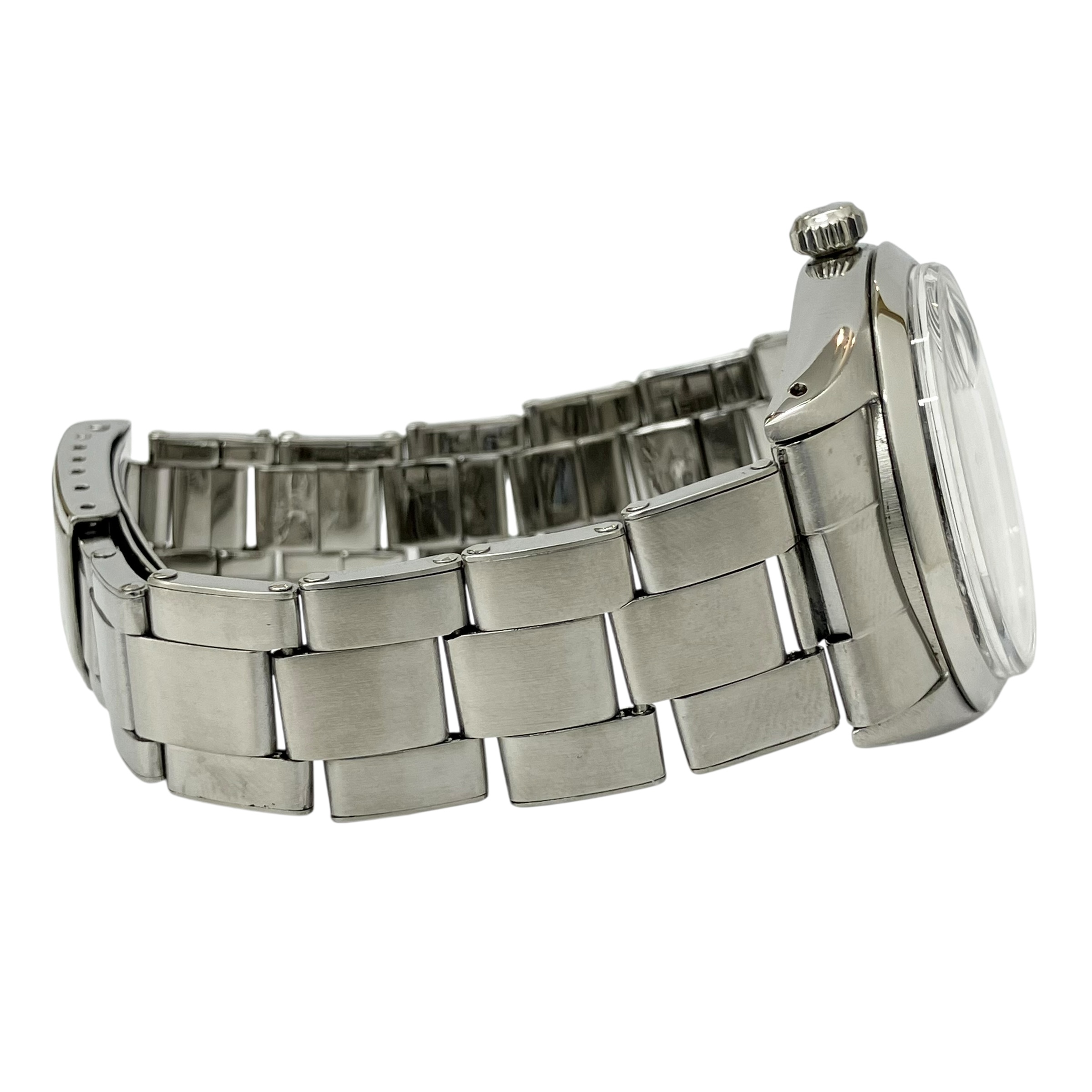 | 素材 | ケース:SS(ステンレススティール) ブレス:SS(ステンレス) ダイヤル:ブラック ガラス:プラスチック |