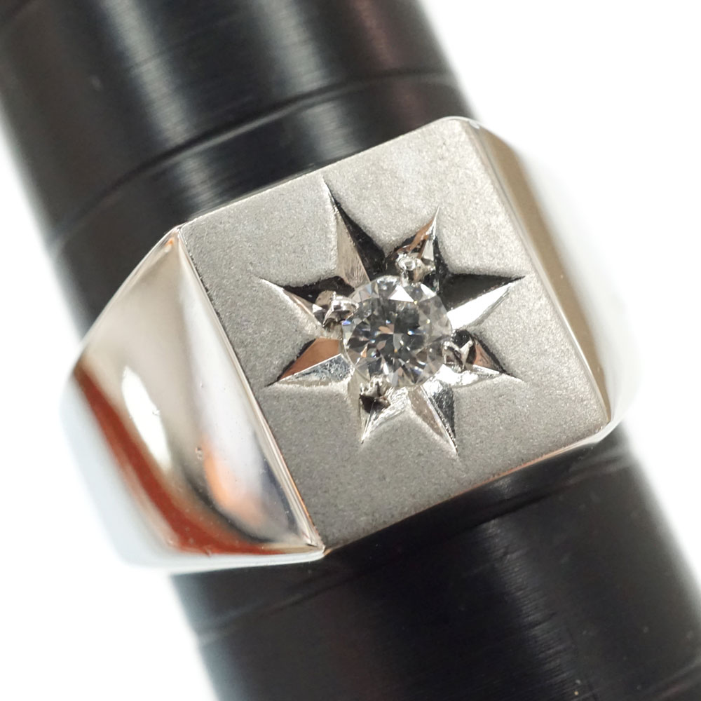 美しく輝くダイヤモンドが施されたデザインのリングです。 お手元のアクセントにいかがでしょうか。