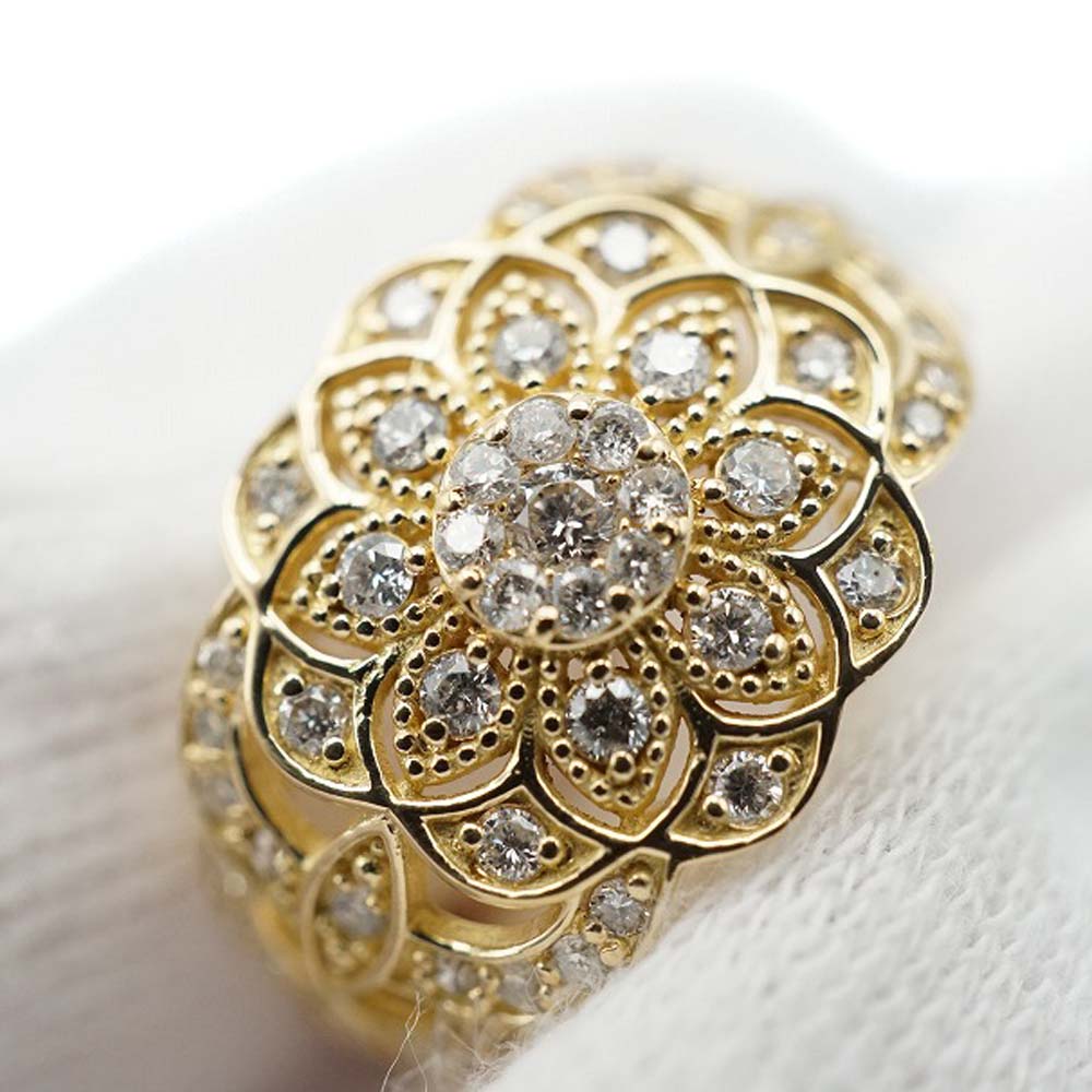 | 商品説明 | K18ダイヤモンドリングのご紹介です。 咲き誇る花のように配置されたダイヤモンドが上品に輝き手元を華やかにしてくれます。 程よいボリュームがあり、パーティーシーンでの着用にもおすすめです。 この機会にぜひいかがでしょうか。 ※尚、当サイトの販売金額より店頭での販売金額の方をお安く設定させて頂いております。予め、ご了承下さいませ。 |