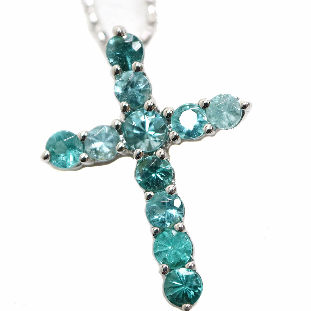 商品説明 | K18WG【18金ホワイトゴールド】パライバトルマリン付きクロスネックレスのご紹介です。