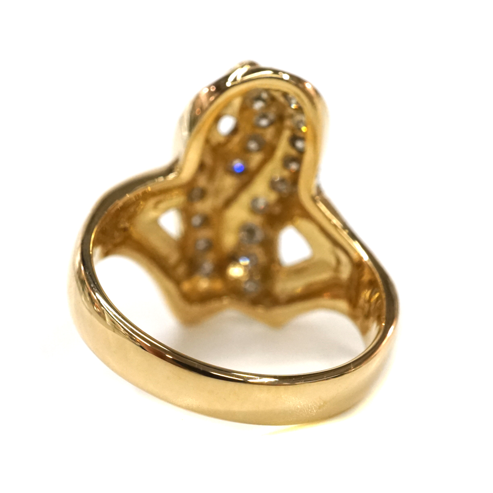 ダイヤモンドが施されたボリュームと存在感のある上品なデザインリングです。 お手元のアクセントにぜひいかがでしょうか。