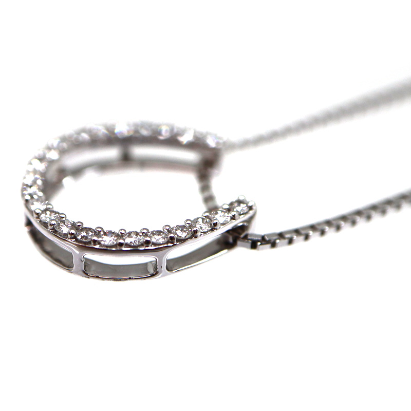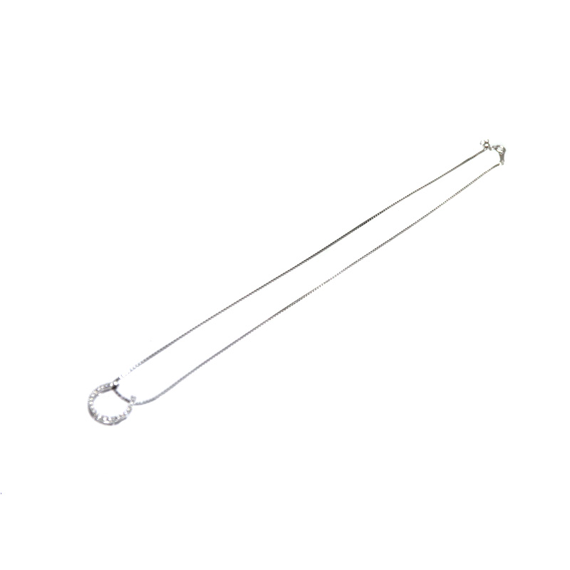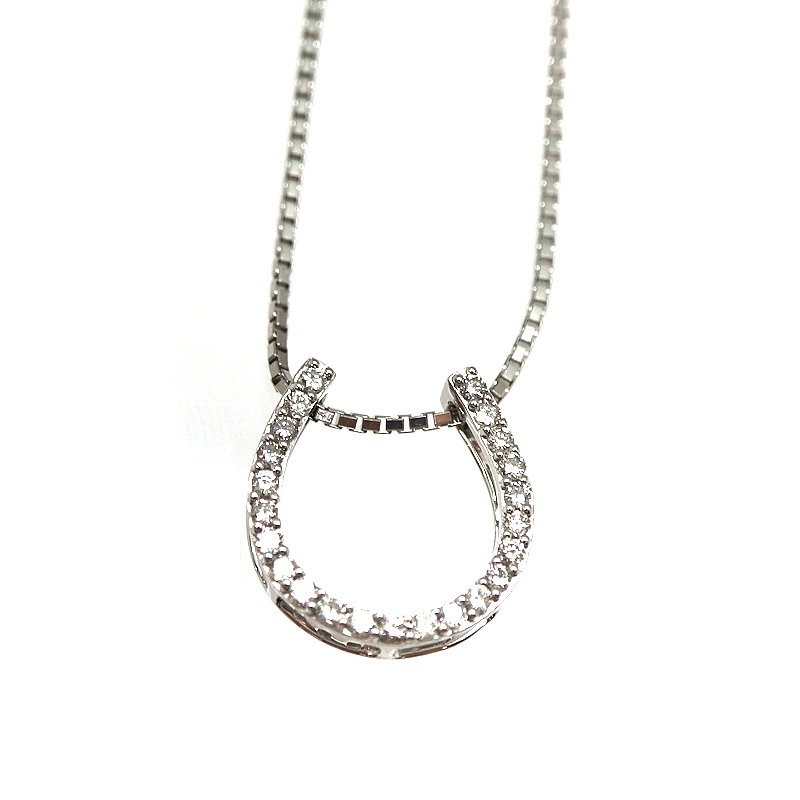 幸運の象徴である馬蹄モチーフに、ダイヤモンドをあしらったK18ホワイトゴールドネックレス。