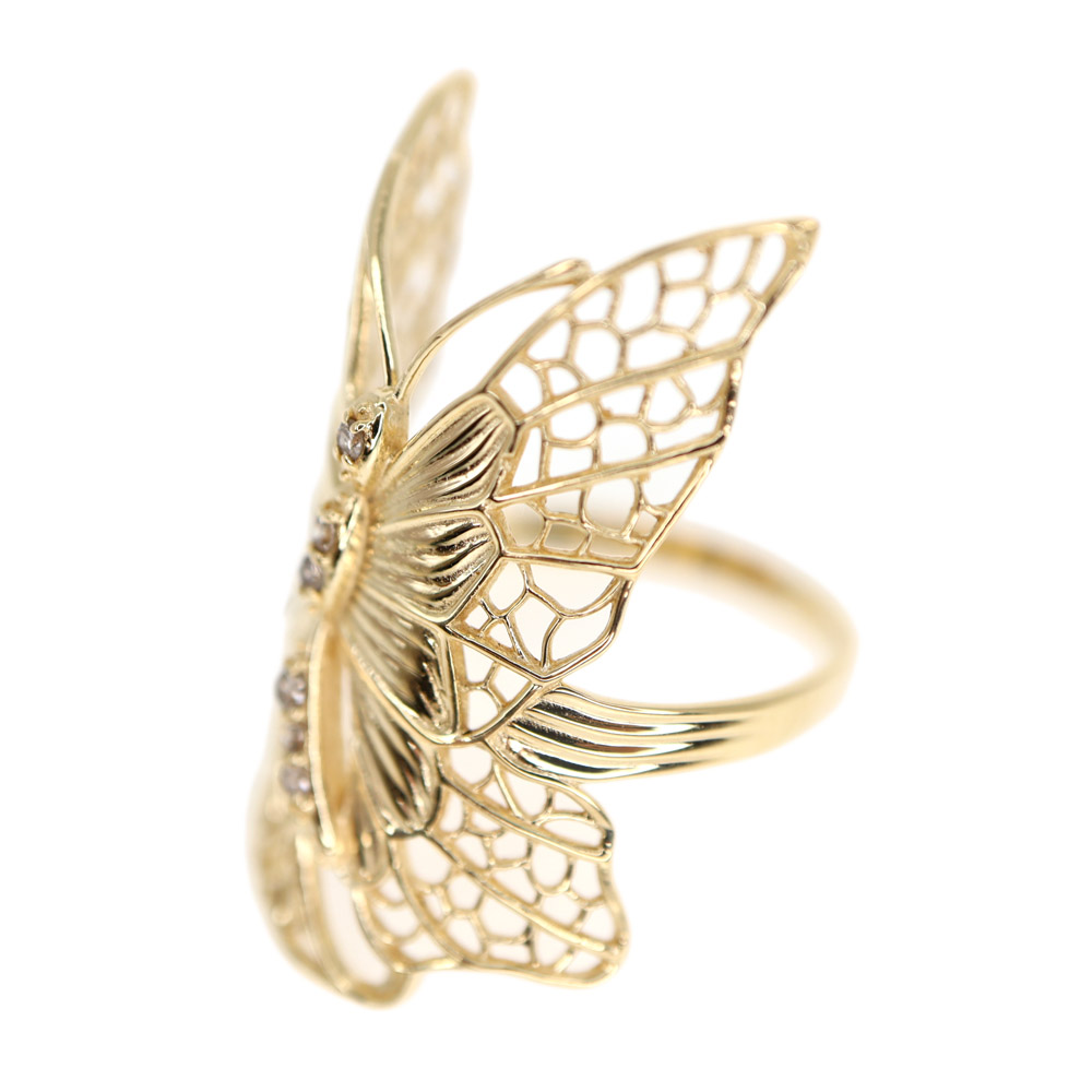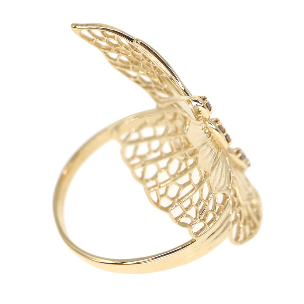 バタフライモチーフの可愛らしいリングです。 中央にダイヤモンドがセッティングされており煌びやかながら上品な印象のアイテムとなっております。