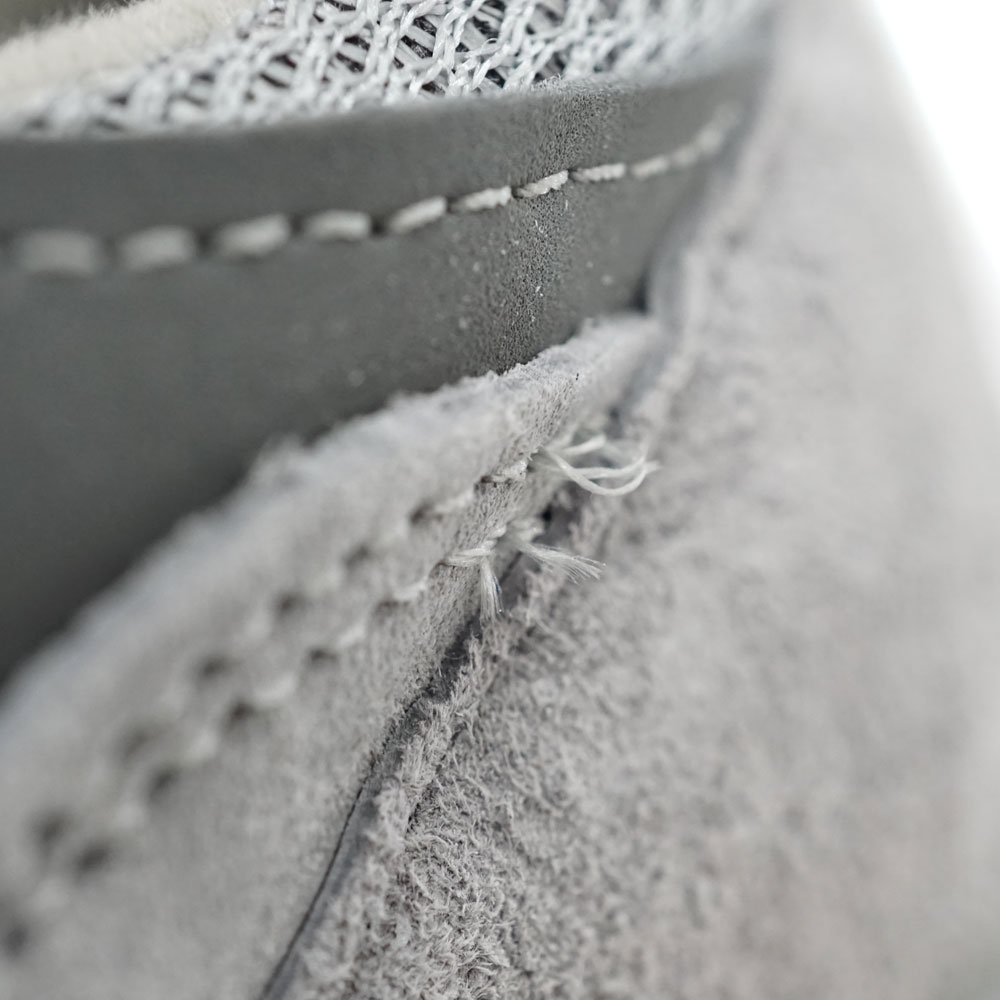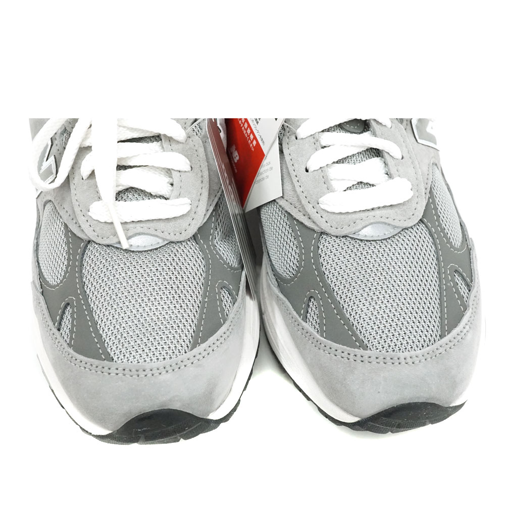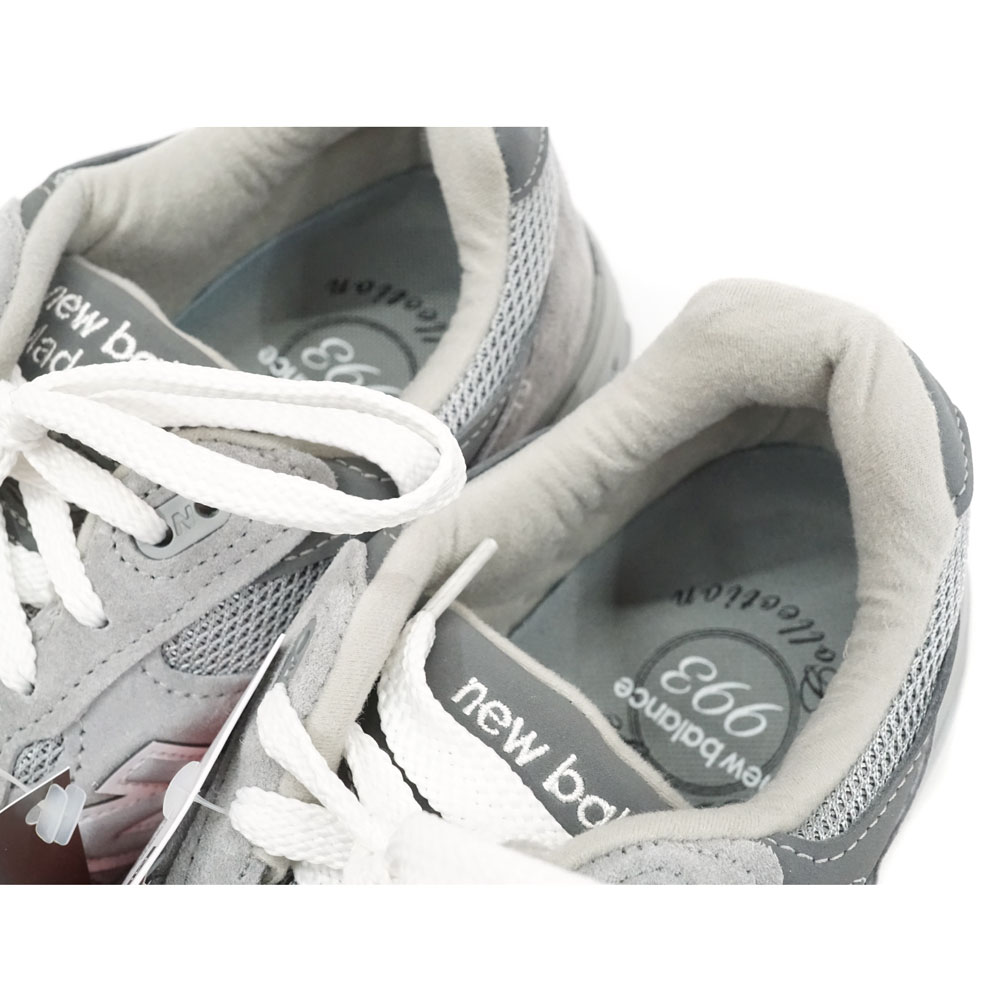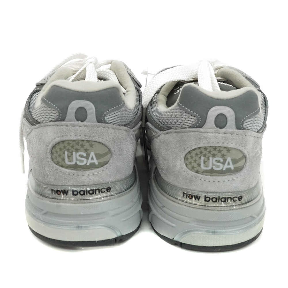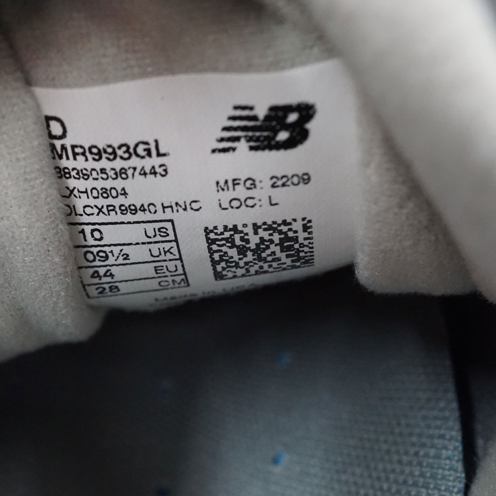 Made in USA 993 の技術的洗練性は、クラシックなコア カラーのメッシュ アッパーにプレミアム スエードを重ね、2 色のミッドソールの上に配置されています。