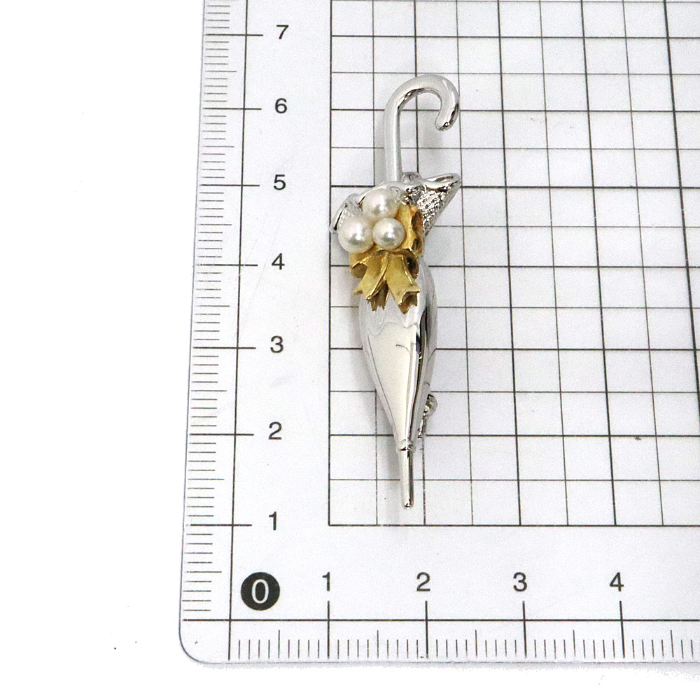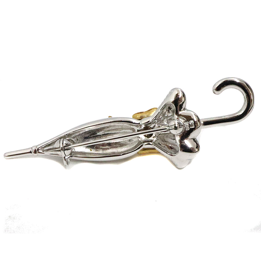 傘モチーフの中央にあるリボン部分に18金を使用しております。 非常に繊細なデザインをしたブローチです。 この機会にぜひいかがでしょうか。