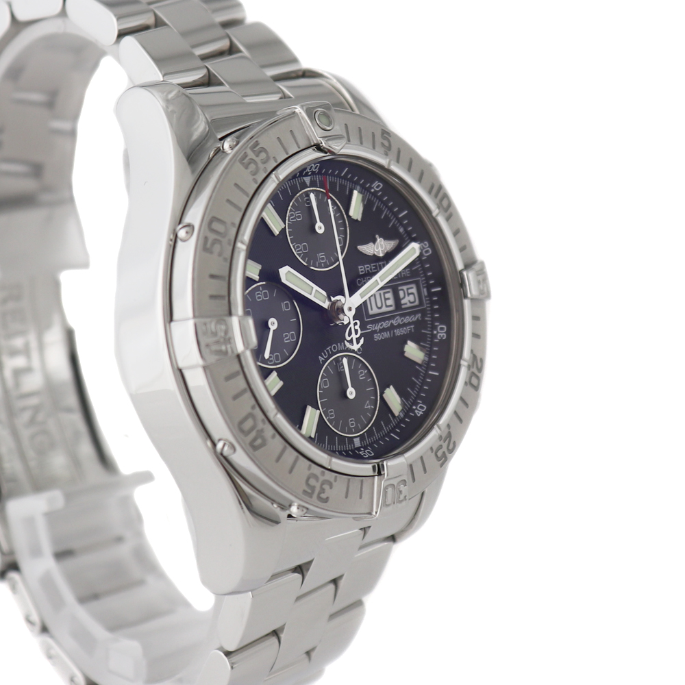 | 商品説明 | ■ブライトリング スーパーオーシャンのご紹介です。 ■「500m防水」と「クロノグラフ」と「デイデイト」の機能が集約されたハイスペックモデルとなっています。 文字盤カラーもブラックのためオンオフ問わず使用しやすいデザインとなっています。