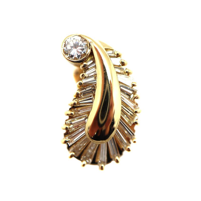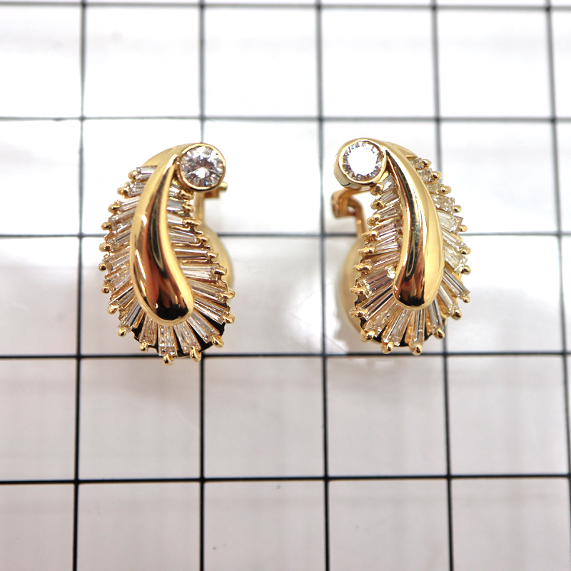 ダイヤモンドが煌めく、美しいデザインのイヤリングです。