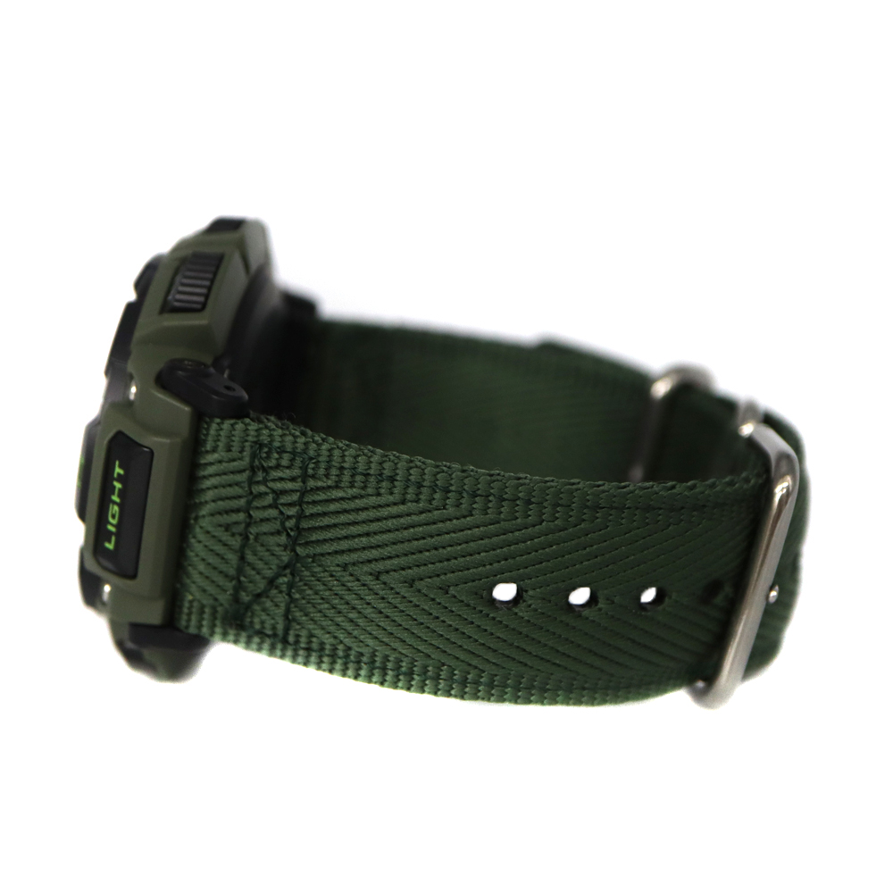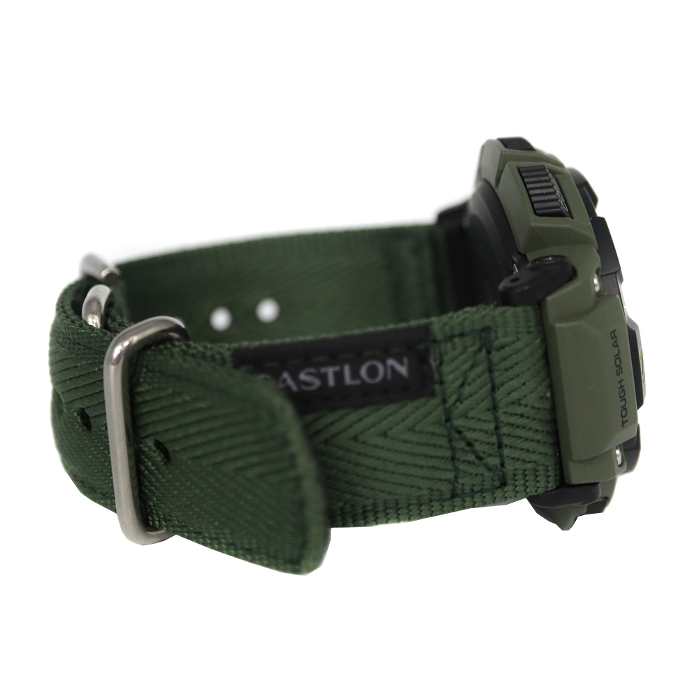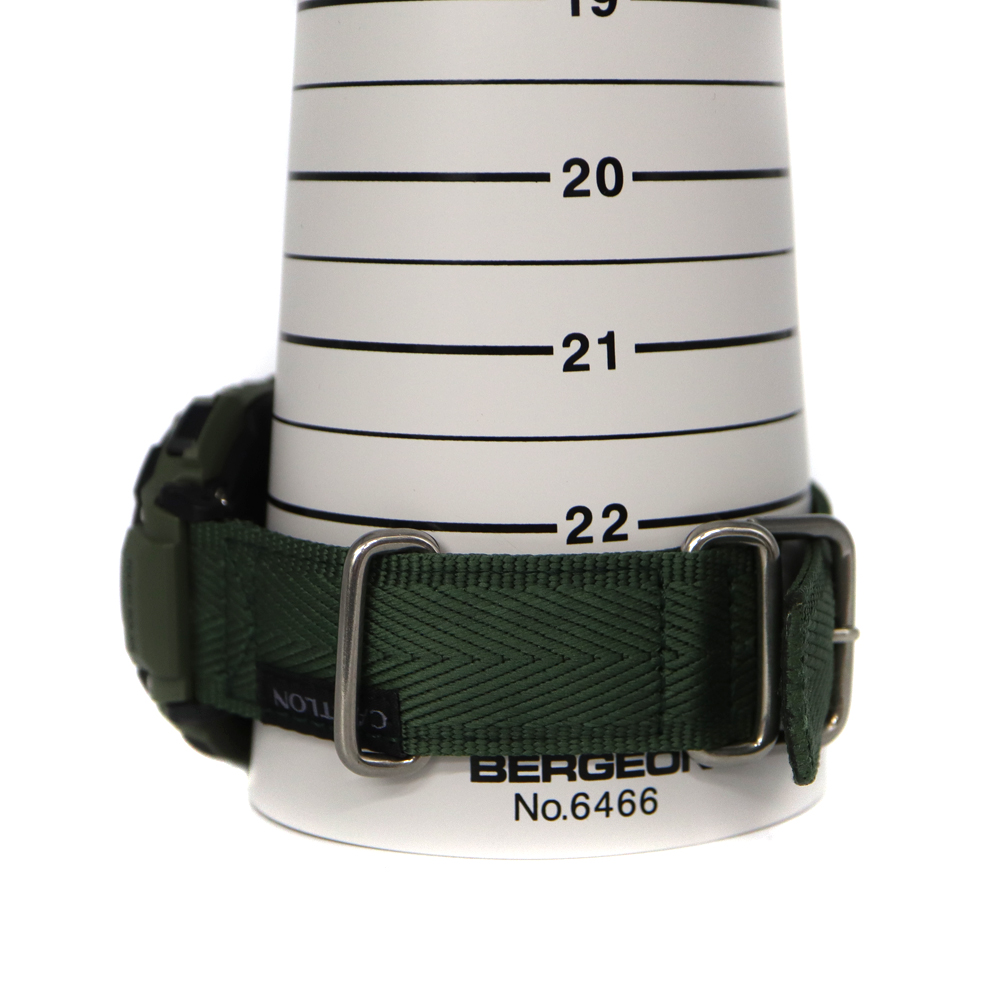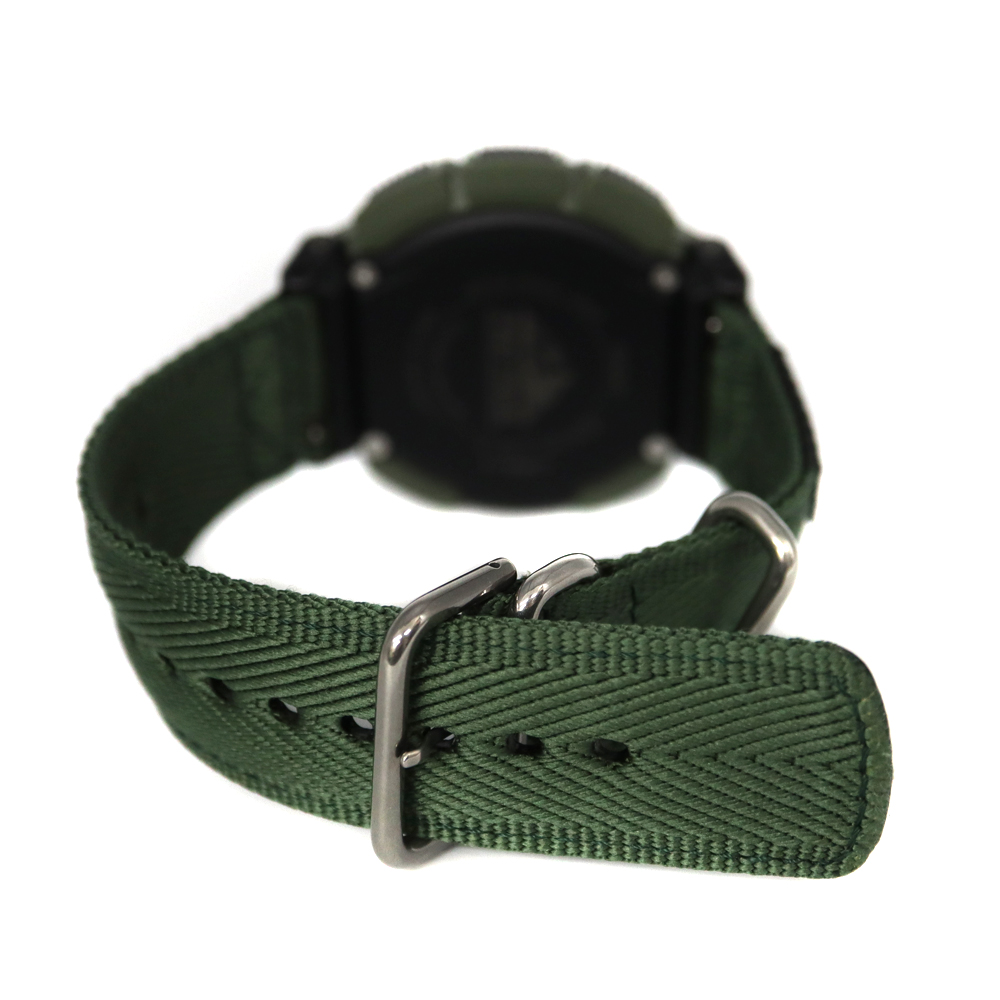 素材 | ケース:樹脂 ブレス:難燃クロスバンド ダイヤル:グリーン/ブラック ガラス:無機ガラス |