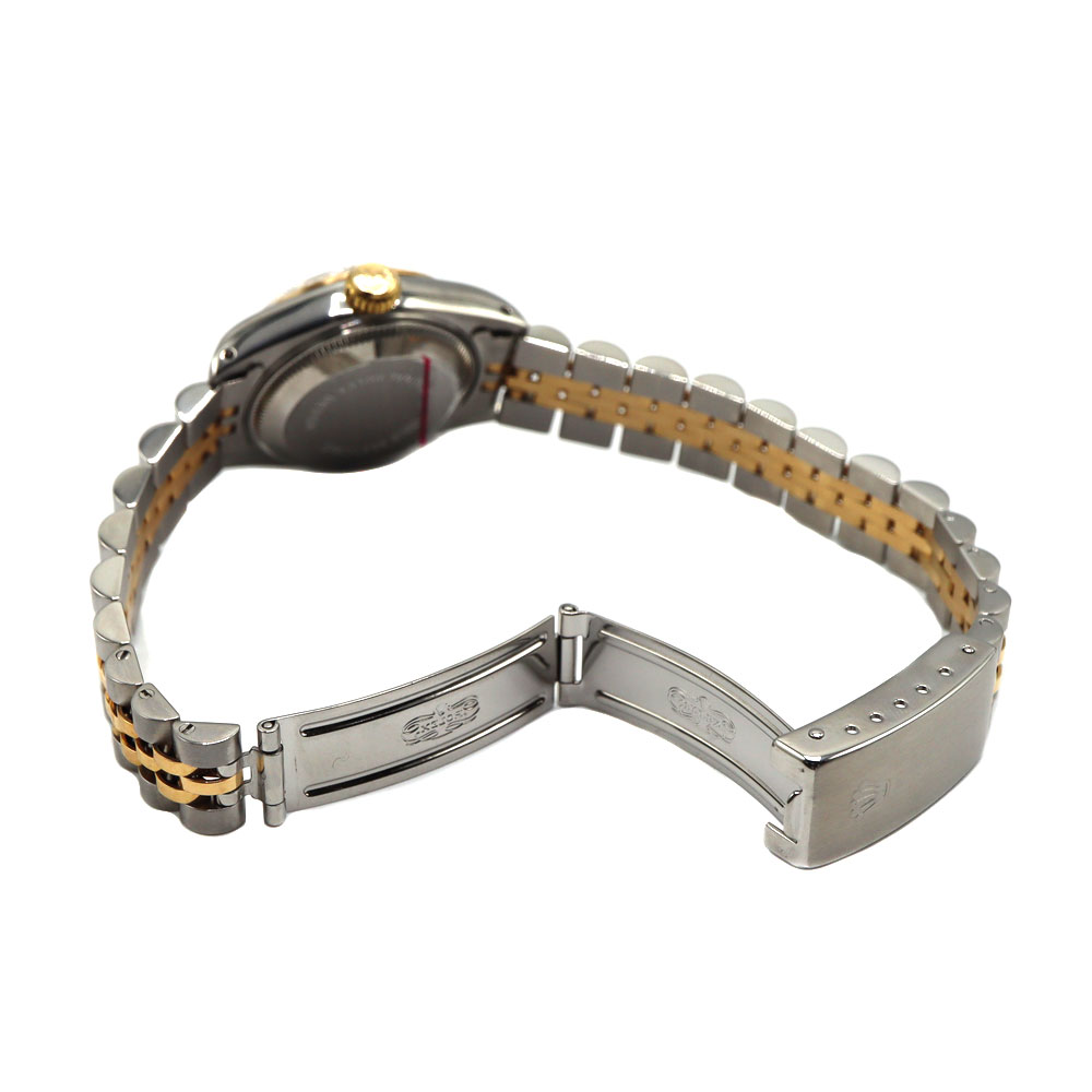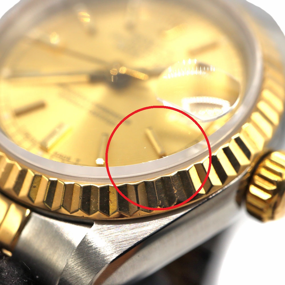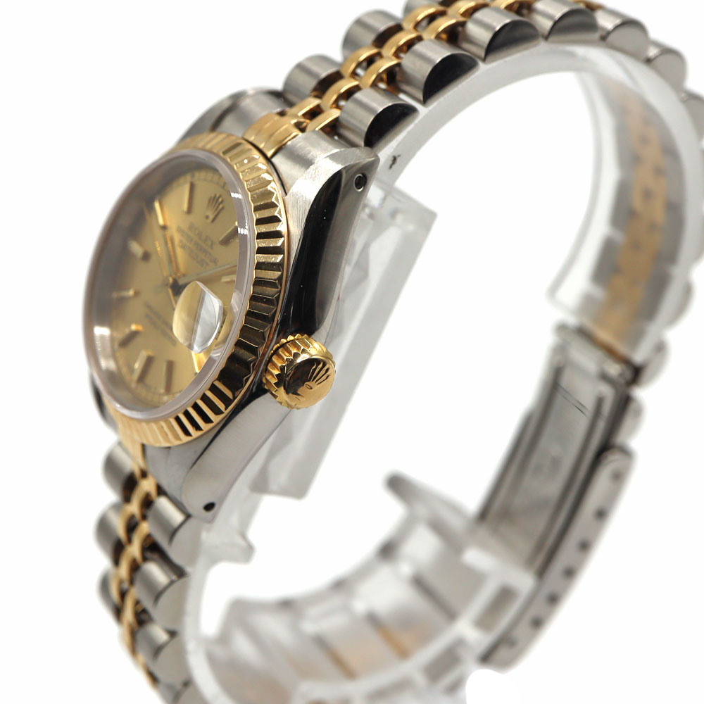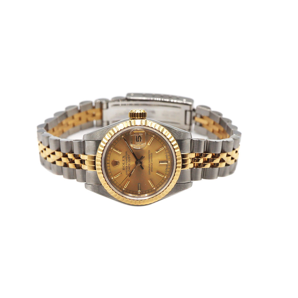 デイトジャストとは午前0時頃瞬時に日付が変わるデイトジャスト機構、全回転式ローターを搭載したパーペチュアル機構、ロレックス三大機構を搭載したモデルです。 シャンパンの文字盤が非常に上品で高級感があります。
