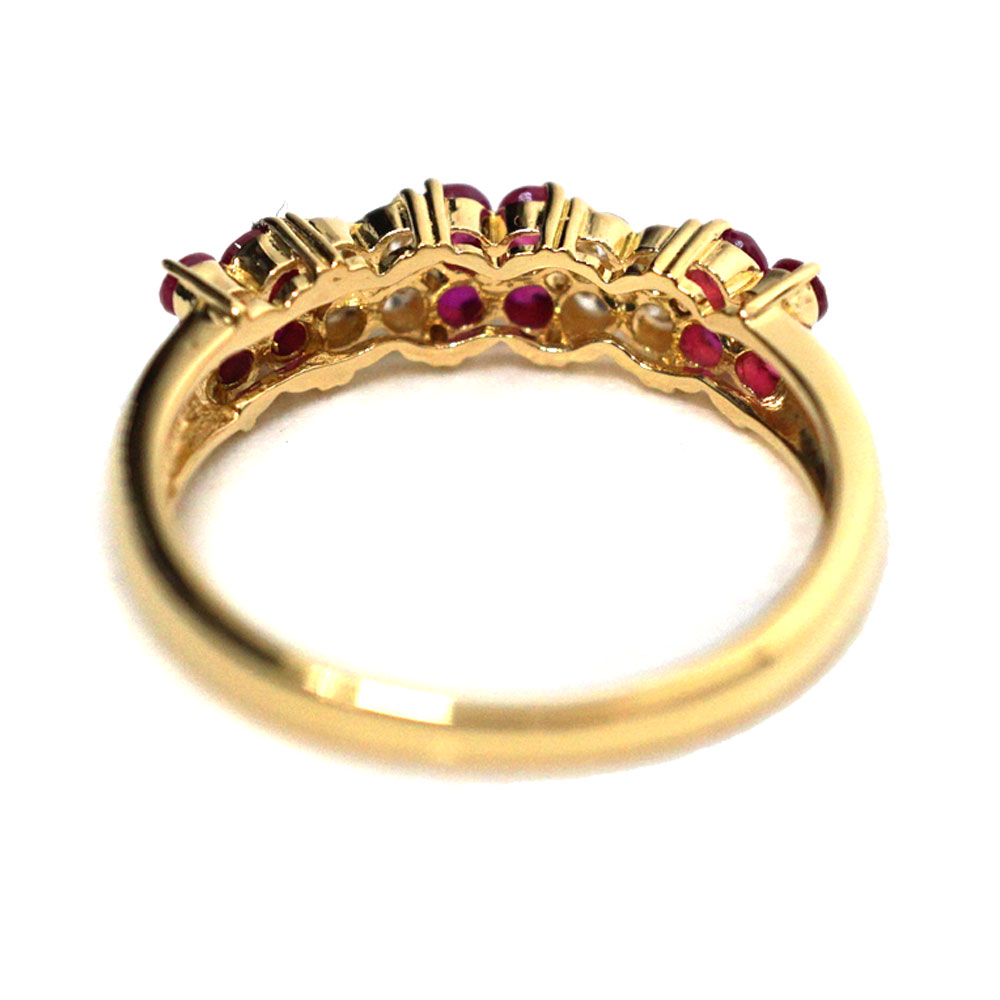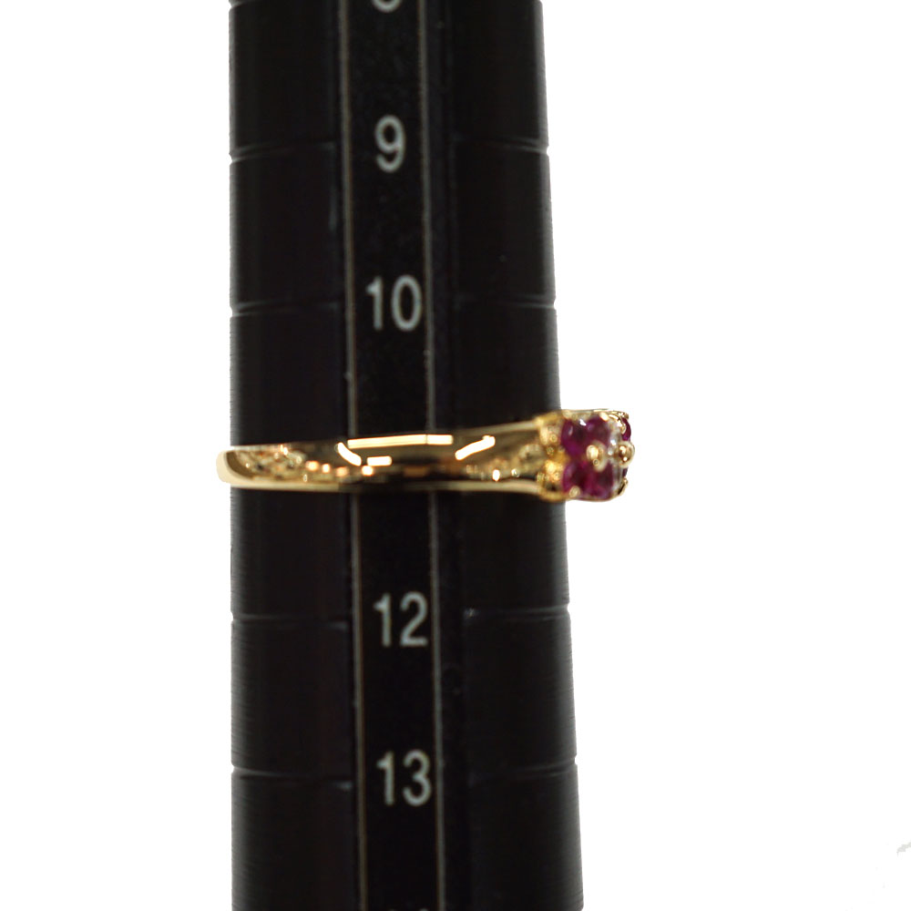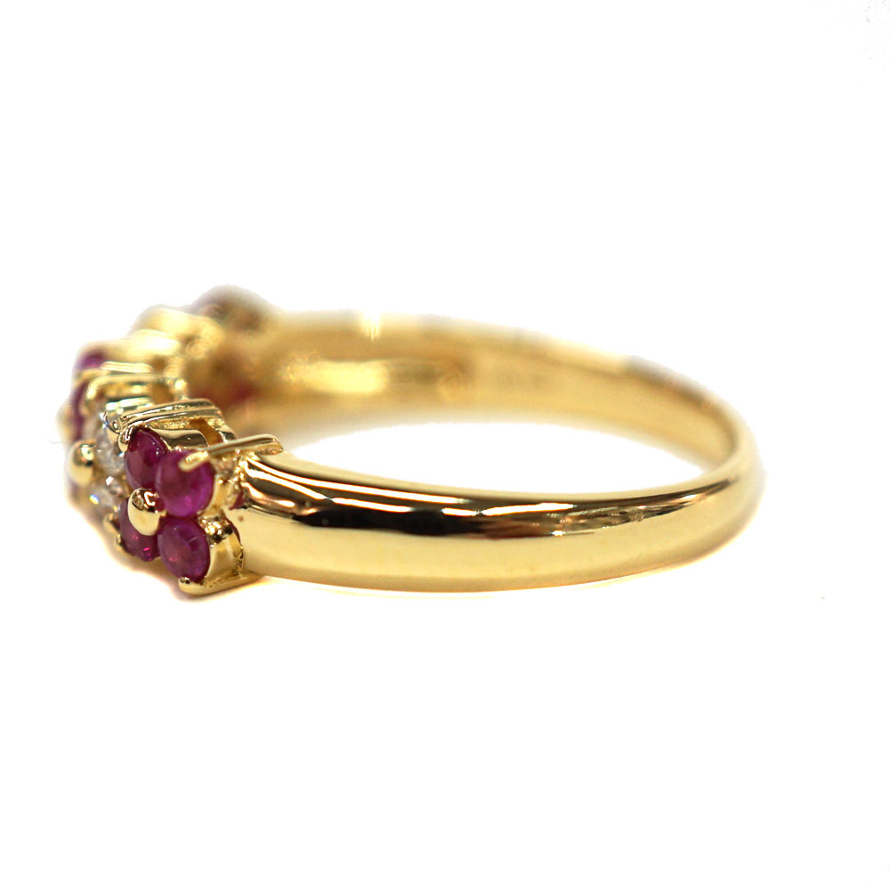 赤色の宝石とダイヤモンドでお花のモチーフになっているデザイン。 可愛らしくなりすぎず、お洒落におつけいただけます お手元のアクセントにぜひいかがでしょうか。