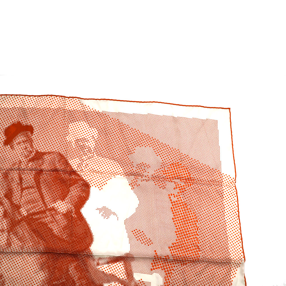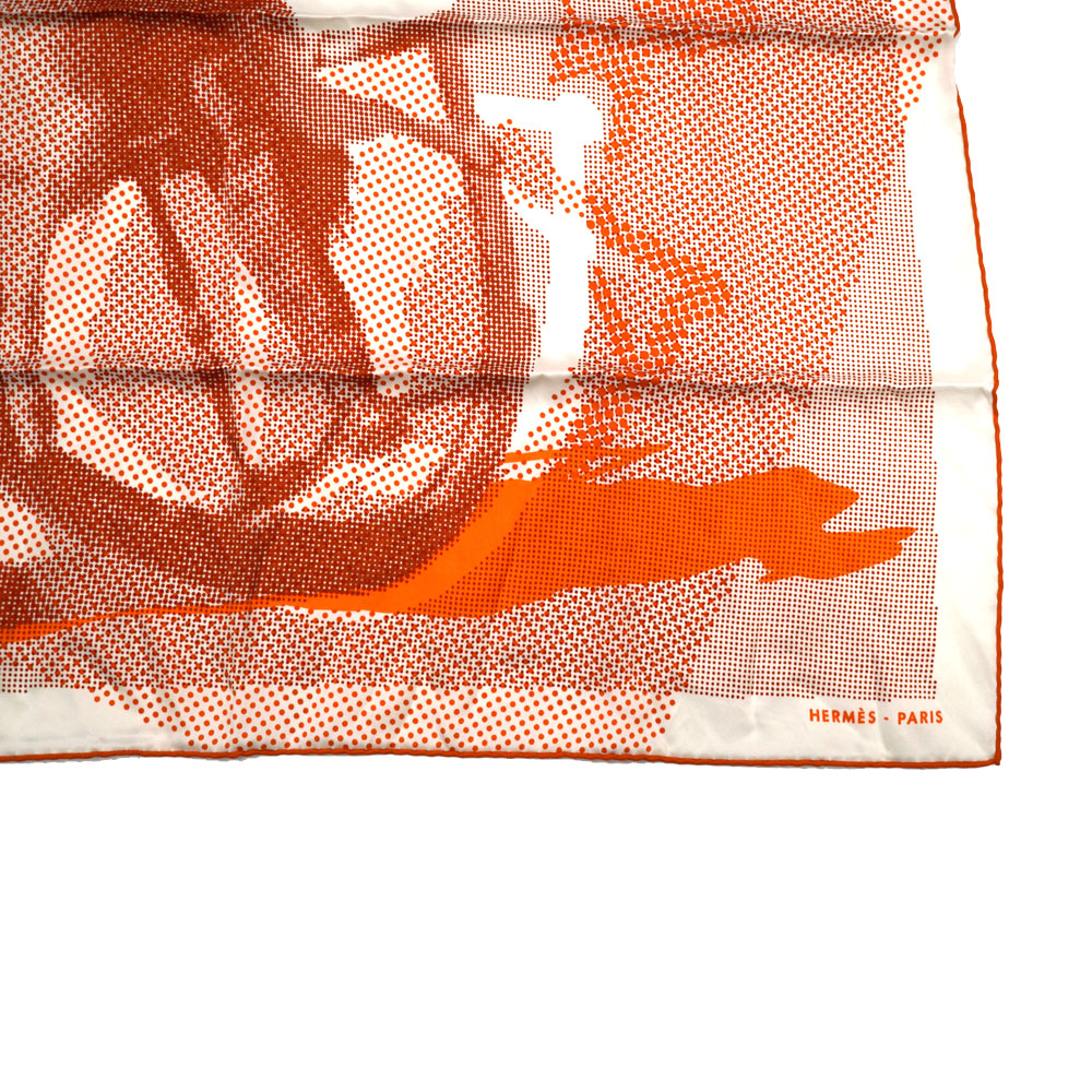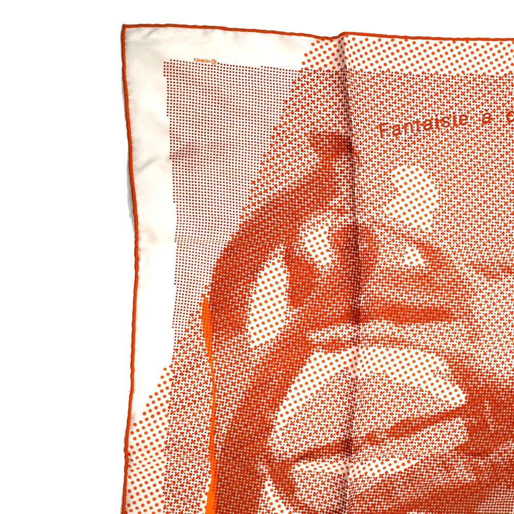 馬に乗ったデザインはドットでで構成されています。 エルメスらしいオレンジカラーが印象的。 首に巻いたりバッグに着けてアクセントに。 お探しの方はこの機会に是非いかがでしょうか。