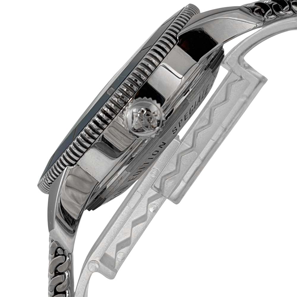 素材 | ケース:SS(ステンレススチール) ブレスレット:SS(ステンレススチール) ダイヤル(色):ブラック 風防素材:サファイアクリスタル |