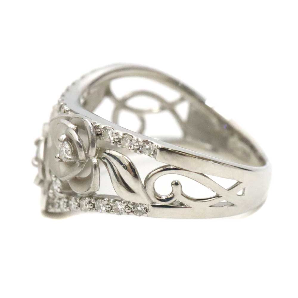 ローズモチーフが立体的にデザインされた個性的なリングです。 ダイヤモンドもはめ込まれゆびもとで綺麗に光ります。 この機会に是非いかがでしょうか。