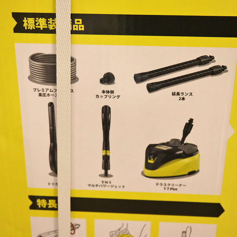 付属品 | テラスクリーナー: T 7 Plus トリガーガン: G 180 Q マルチパワージェットノズル 高圧ホース: 12 m, プレミアムフレックス高圧ホース 本体側カップリング |