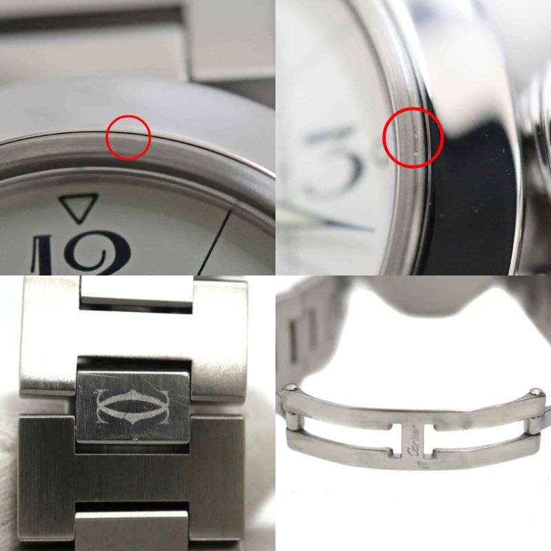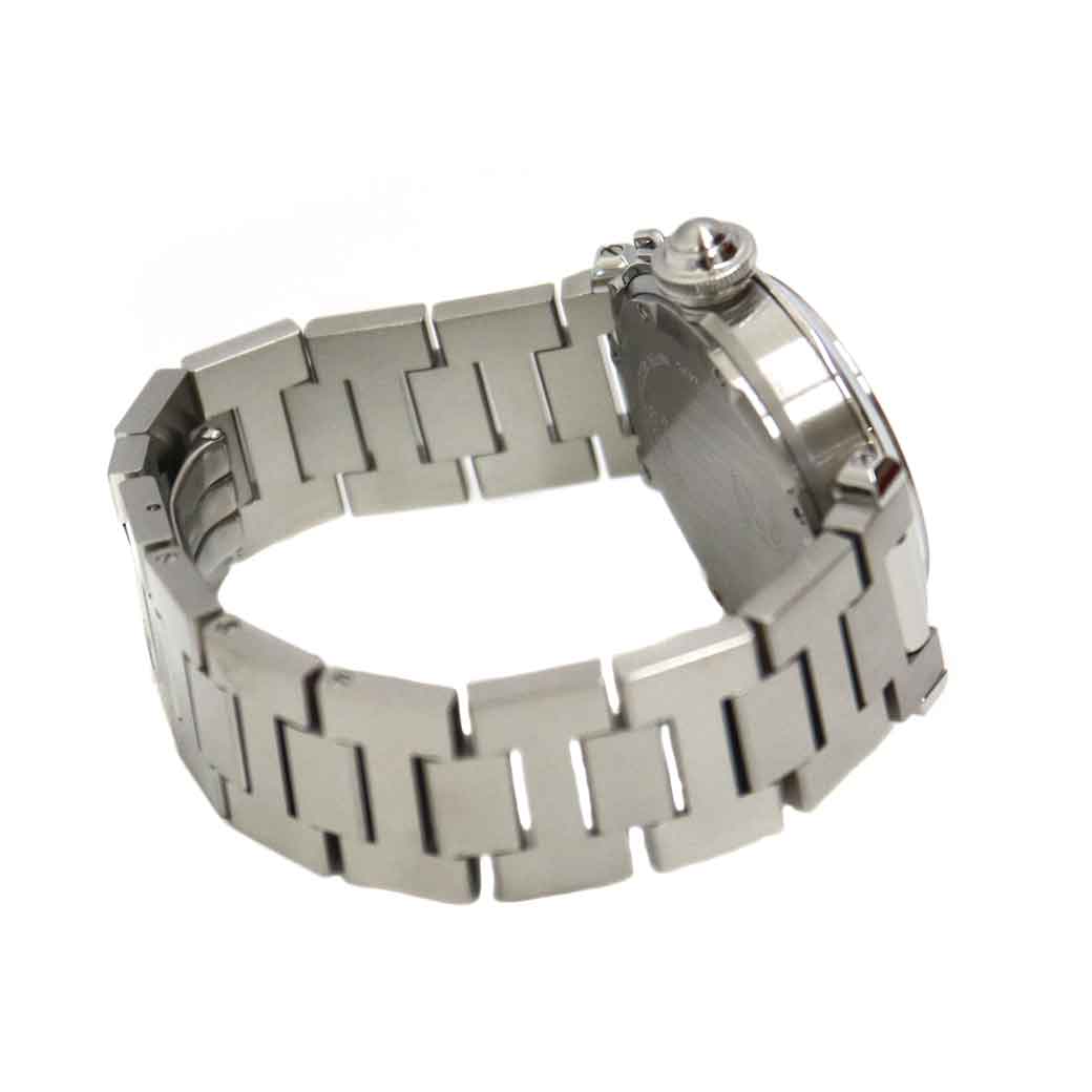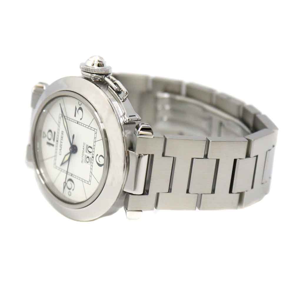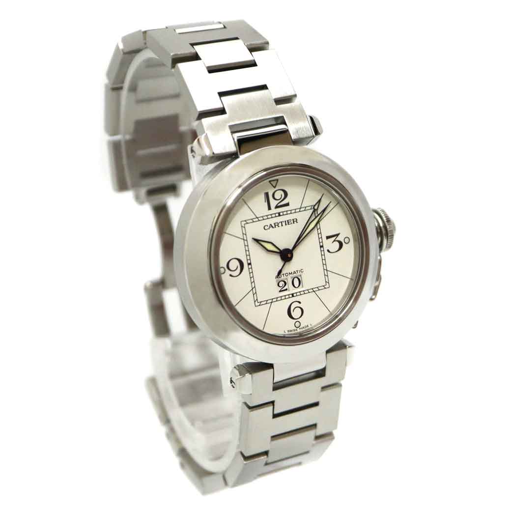 カルティエの定番で人気の高いパシャCです。 6時位置に見やすい日付表示が特徴です。 ホワイトの文字盤ですので手元が華やかになる一本です。 またケース径が35mmなので男女問わずお使い頂けます。 この機会に是非いかがでしょうか。