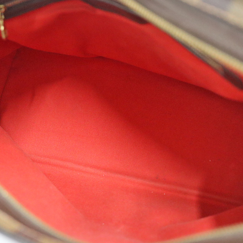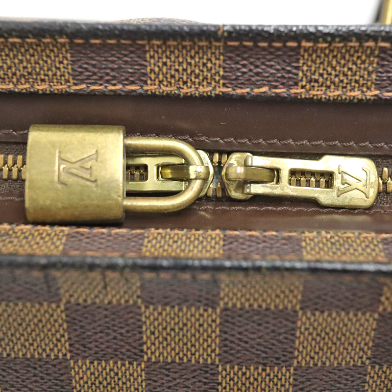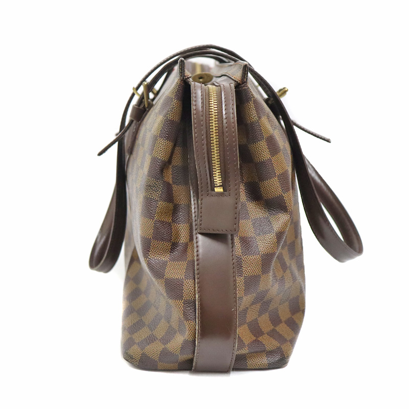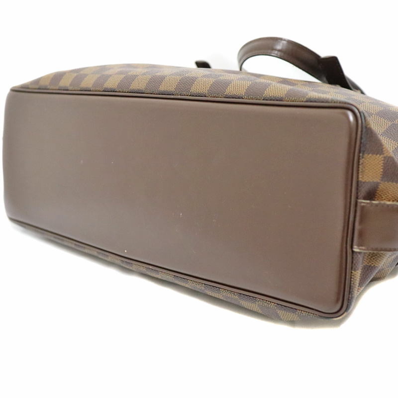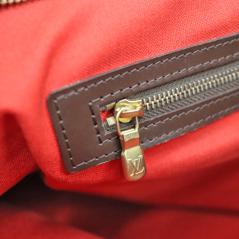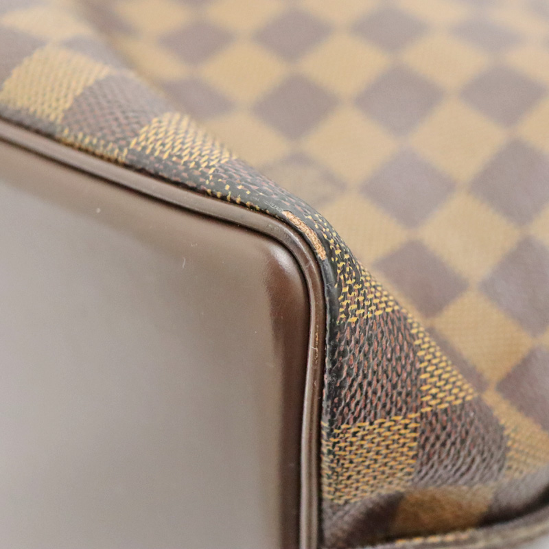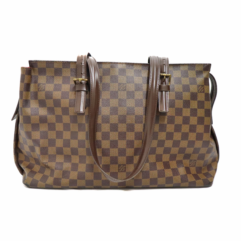 ダミエキャンバスでルイヴィトンのレザーグッズやシューズとの相性も抜群です。 仕切りがなく収納力も抜群です。かなり容量が大きいので旅行鞄にも最適です。 ショルダーは調節穴がありますので若干の調節は可能です。 ぜひいかがでしょうか。
