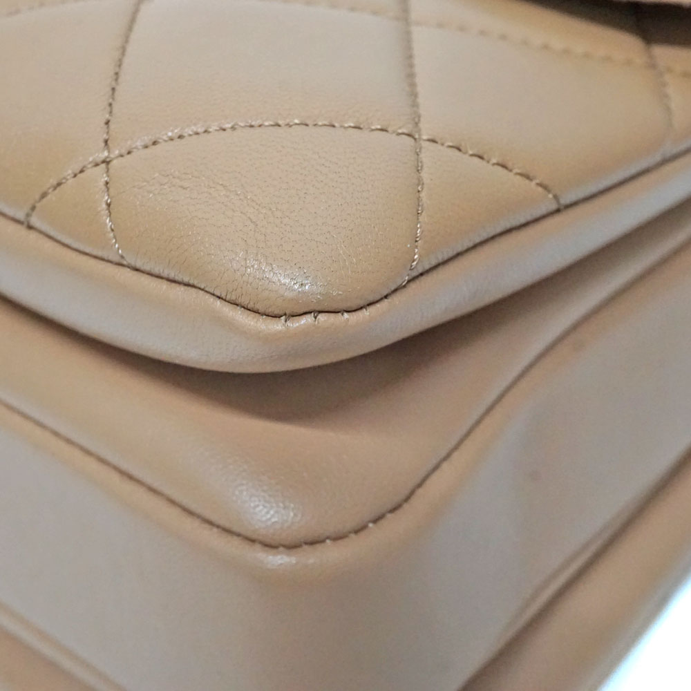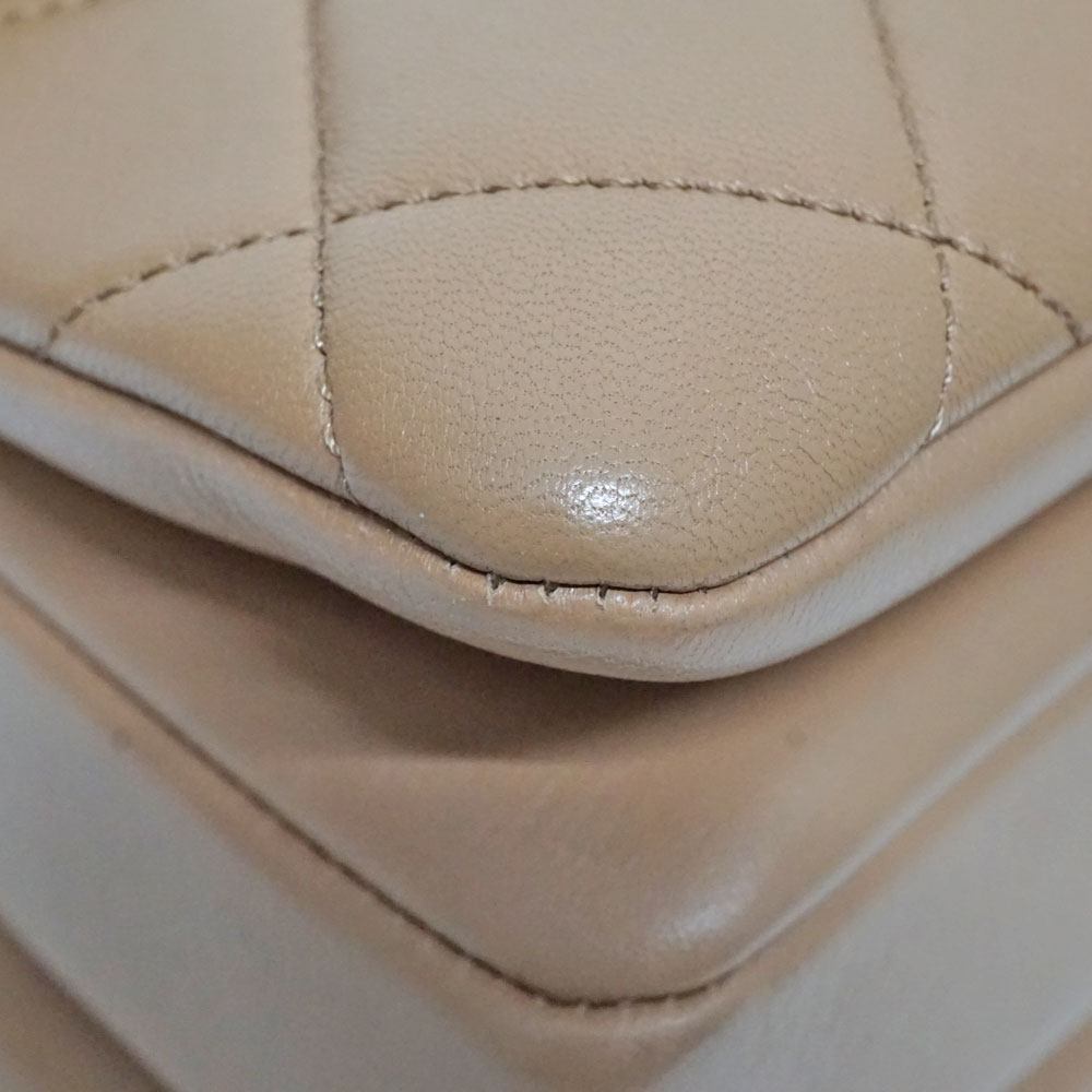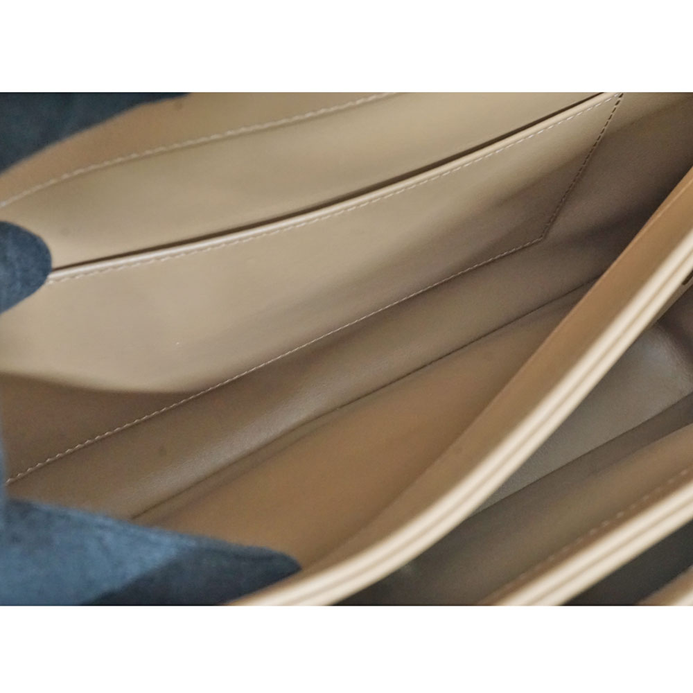 定番人気のベージュ×ゴールド金具のチェーンショルダーバッグです。 素材は柔らかなラムスキンを使用。 ショルダーは斜め掛けも可能ですので、お好みに合わせてお使い分けができます。