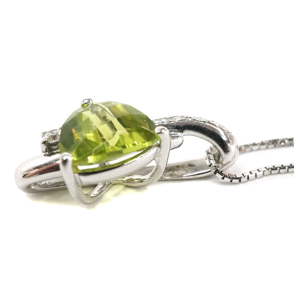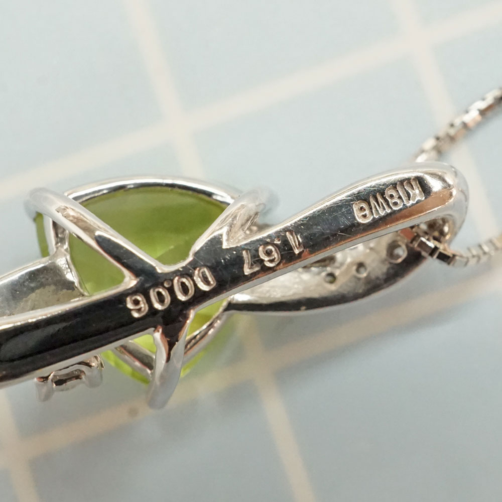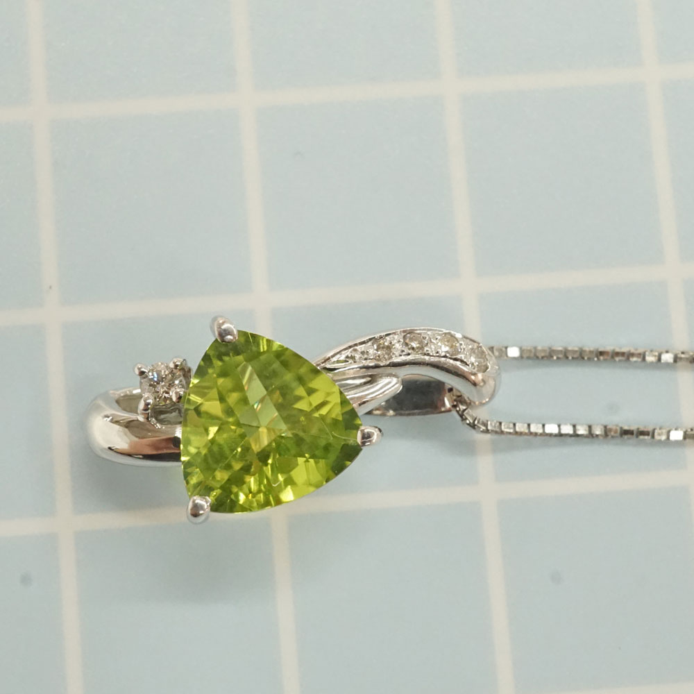 ペリドットとダイヤモンドが施された高級感溢れるデザインネックレスです。 首元のアクセントにいかがでしょうか。
