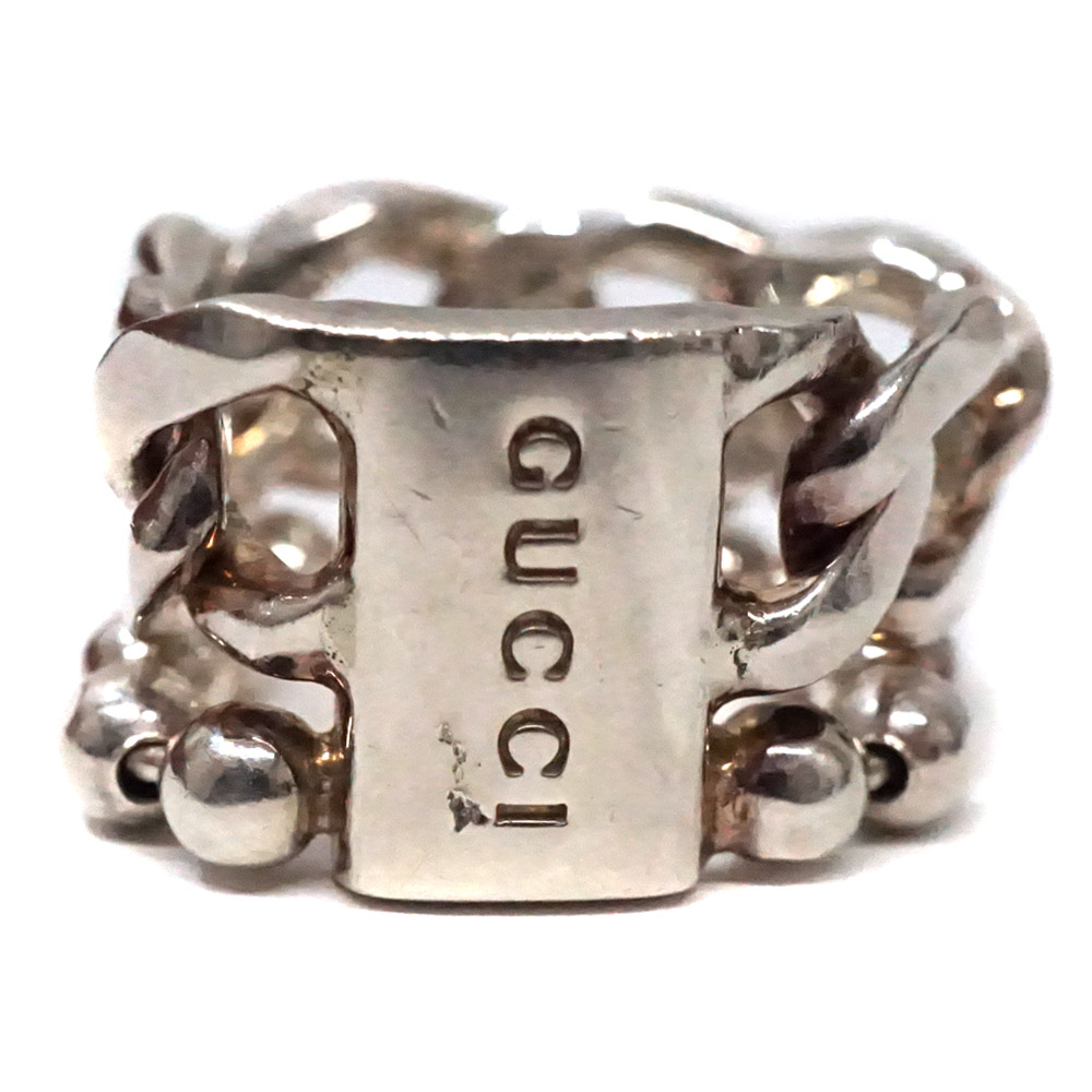商品説明 | グッチのWチェーンロゴリングのご紹介です。 2種類のチェーンが組み合わり円を描いたデザインのオシャレなリングです。 チェーンモチーフのため多少の変形が可能で指の形にフィットしてくれるそんな1点となっております。 この機会にぜひいかがでしょうか。 ※尚、当サイトの販売金額より店頭での販売金額の方をお安く設定させて頂いております。予め、ご了承下さいませ。(一部セール品を除く) |