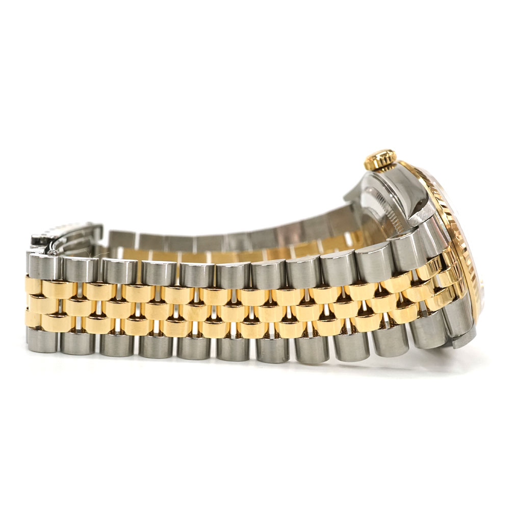 ■美しいカッティングが施されたフルーテッドベゼルとブレスレット中央パーツに18Kイエローゴールドを使用したラグジュアリー感溢れるモデルですので、手元を華やかにしてくれます。