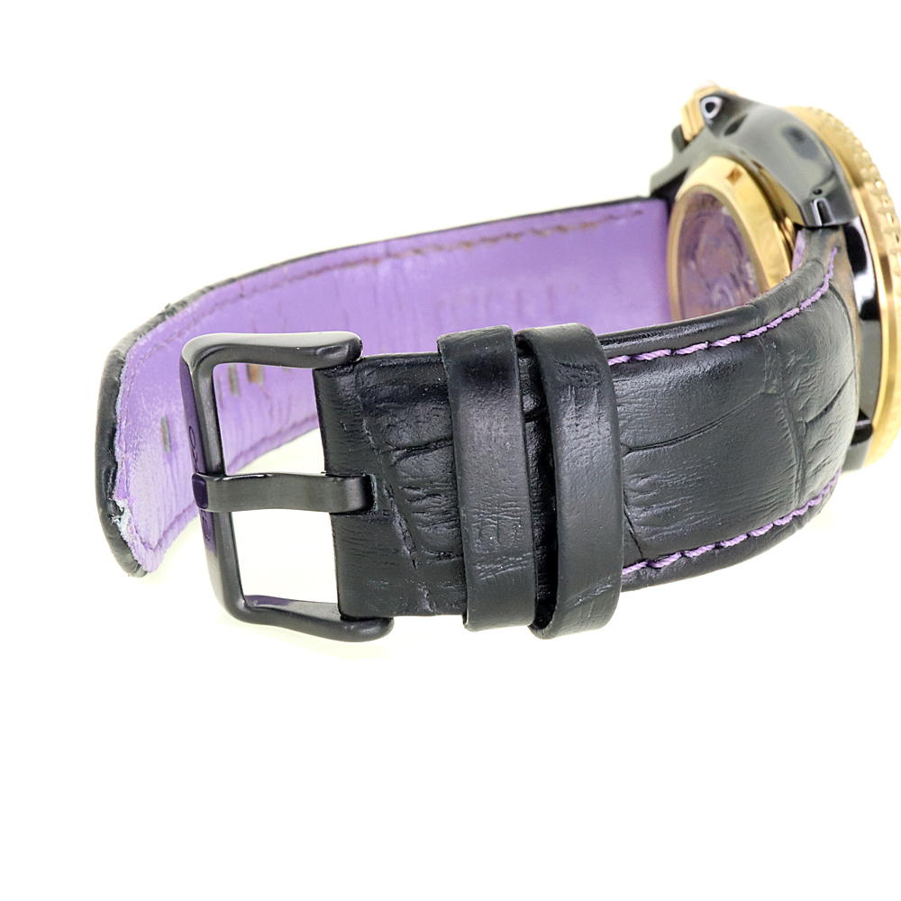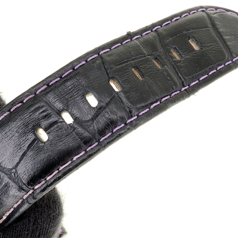素材 | ケース:ステンレス ブレス:レザー ダイヤル:ブラック文字盤 風防(ガラス):ハードレックス製ガラス |
