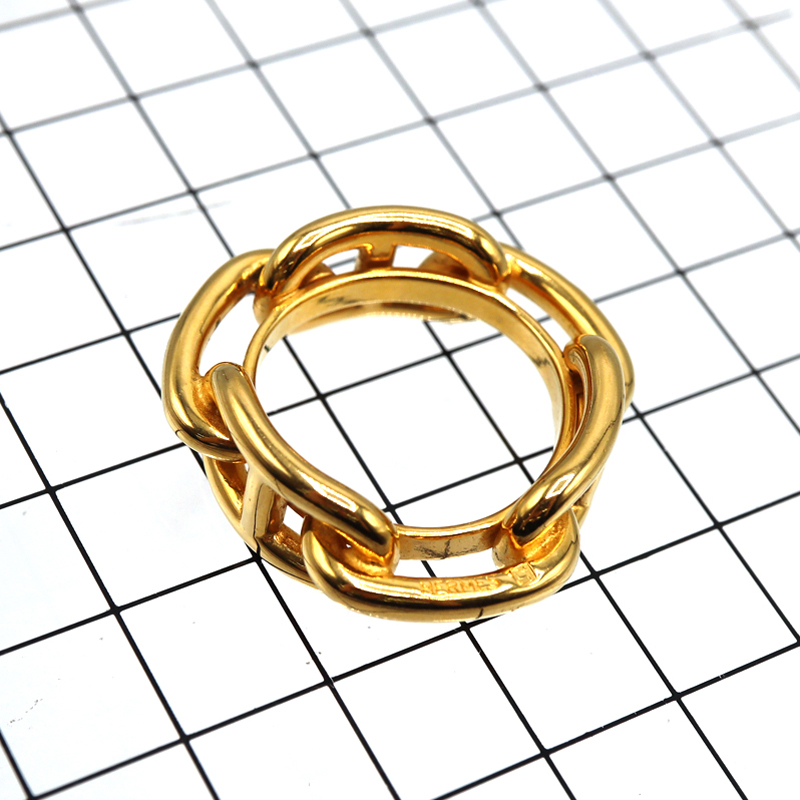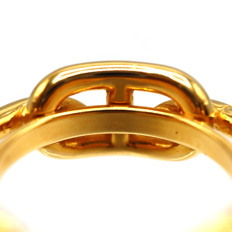エルメスの象徴的なモチーフ「シェーヌダンクル(錨の鎖)」をデザインに取り入れた、エレガントなスカーフリングです。