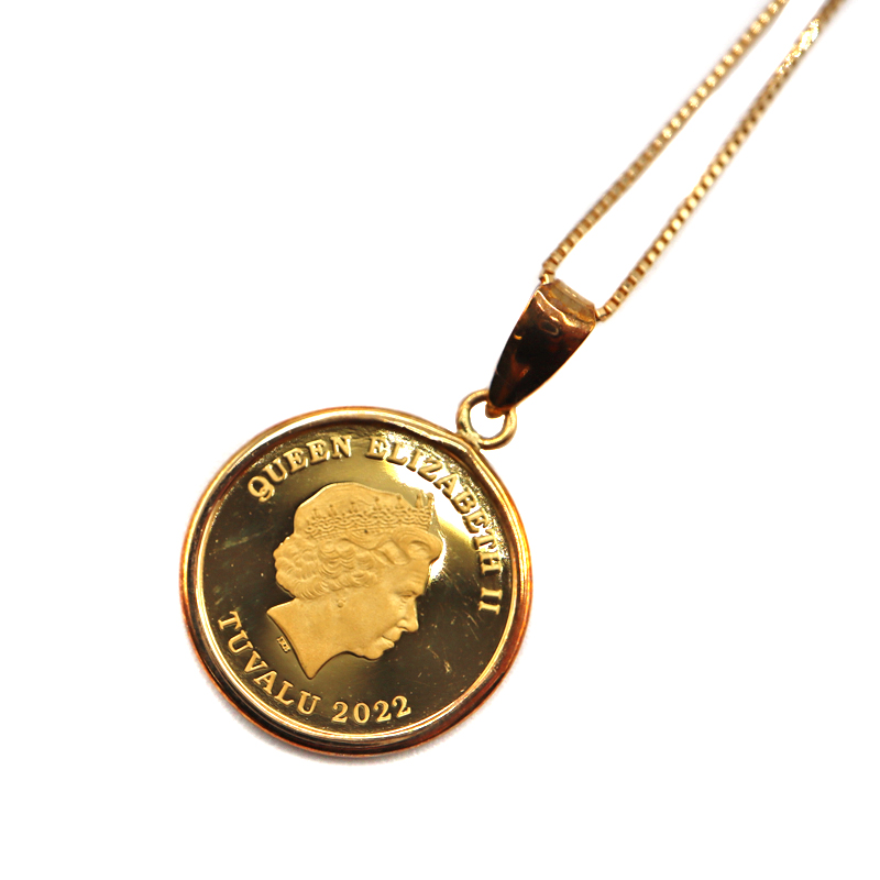 コインは24金で枠とネックレスチェーンが18金となっております。