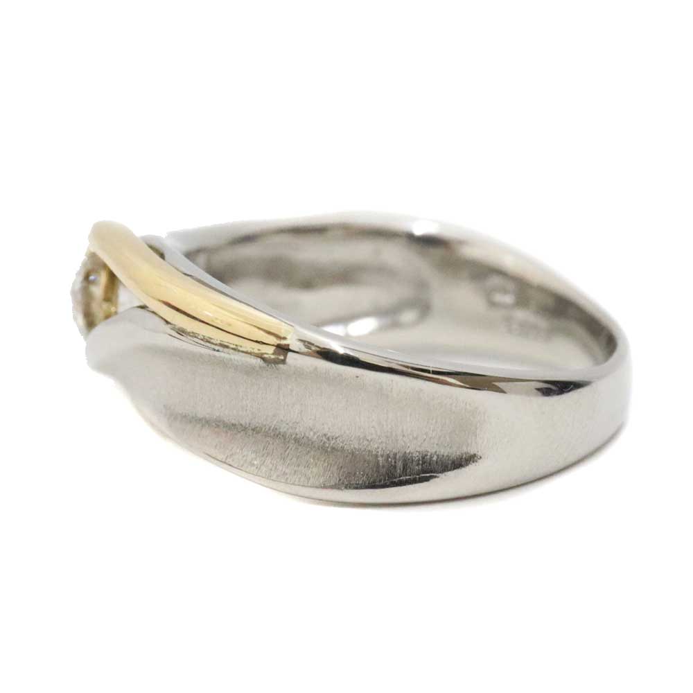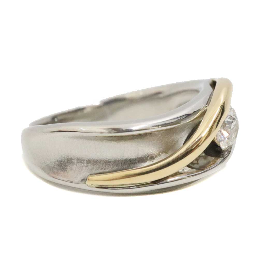 ゴールドとプラチナのコンビリングとなり、中央にダイヤモンドが一粒はめ込まれたデザインです。 お手元を華やかにしてくれるアイテム。 この機会に是非いかがでしょうか。