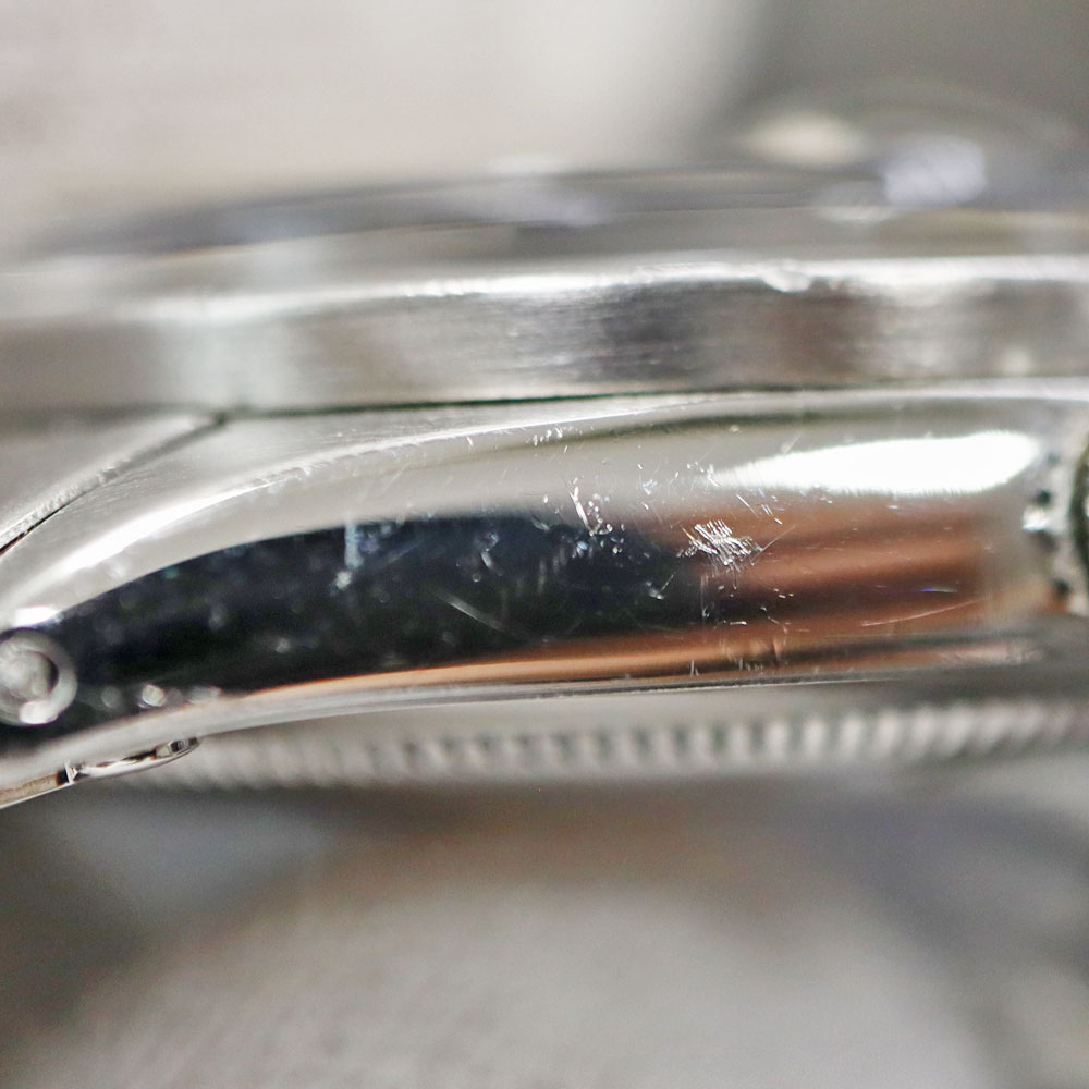 商品状態 | ■ブレス、ケースサイド、ベゼル、バックル部分にキズがございます。 ■ベルトの伸びがございます。 ■針に腐食がございます。 ■店頭でも販売中のため画像にない傷が付く場合が御座いますのでご了承下さいませ。 |