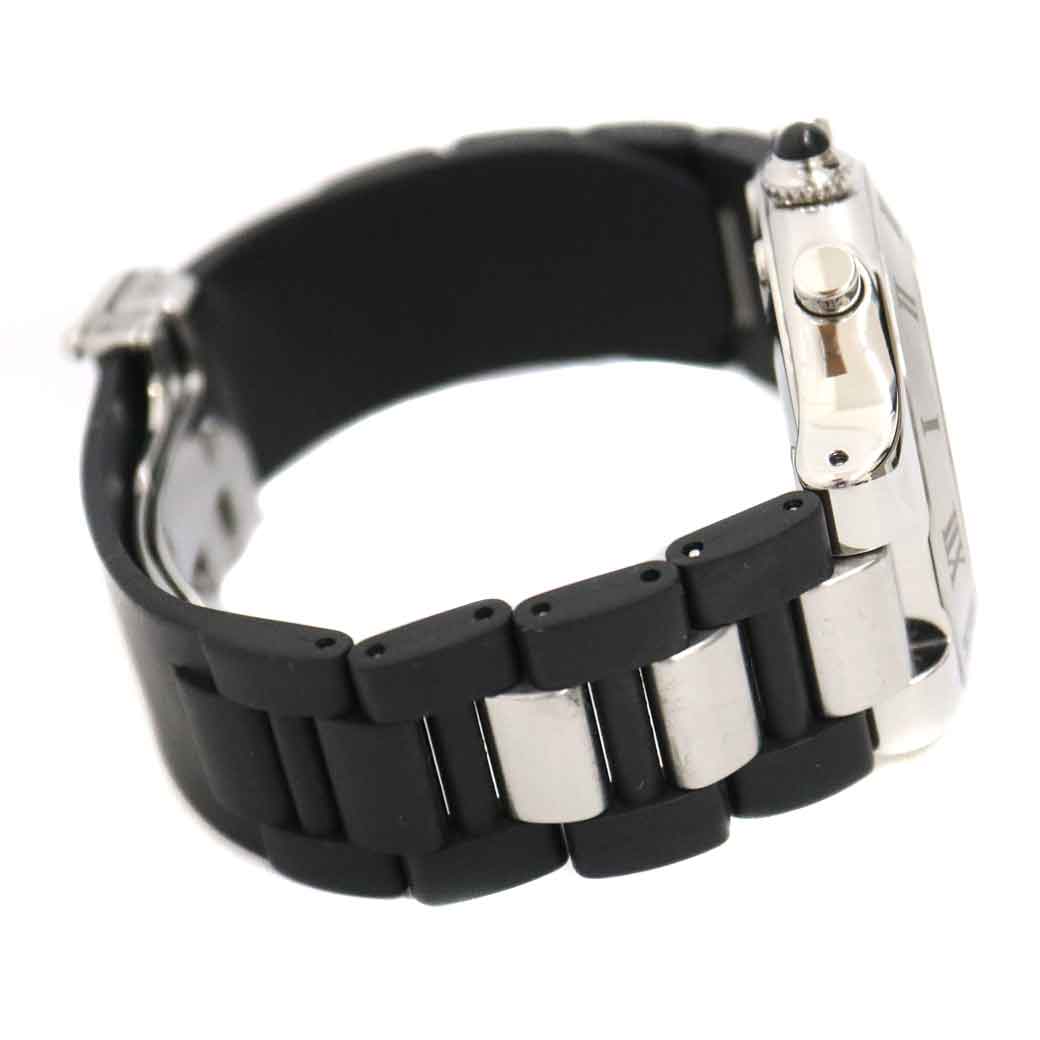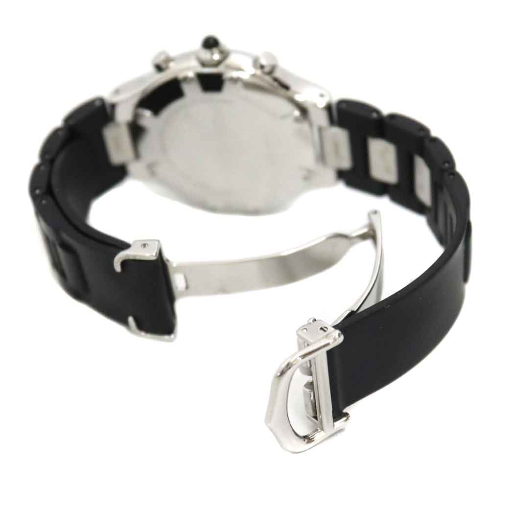 カルティエを象徴するローマ数字がベゼルに搭載されたモデルです。 ブラックの文字盤にカルティエのロゴ、2Cモチーフがプリントされています。 ラバーベルトにステンレスを組みわせ、軽量化を図ったモデルです。 この機会に是非いかがでしょうか。