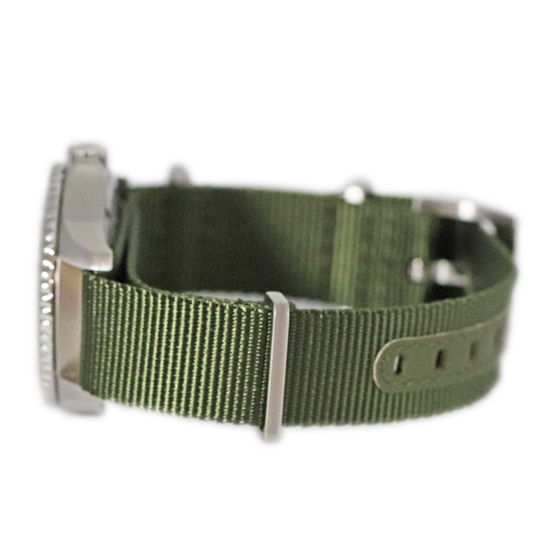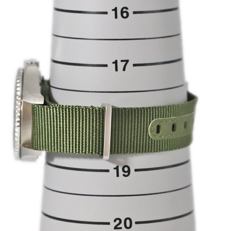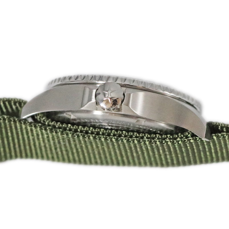 素材 | ケース:SS(ステンレススチール) ブレス:ファブリックブレスレット ダイヤル:カーキ系 ガラス:サファイアクリスタル |