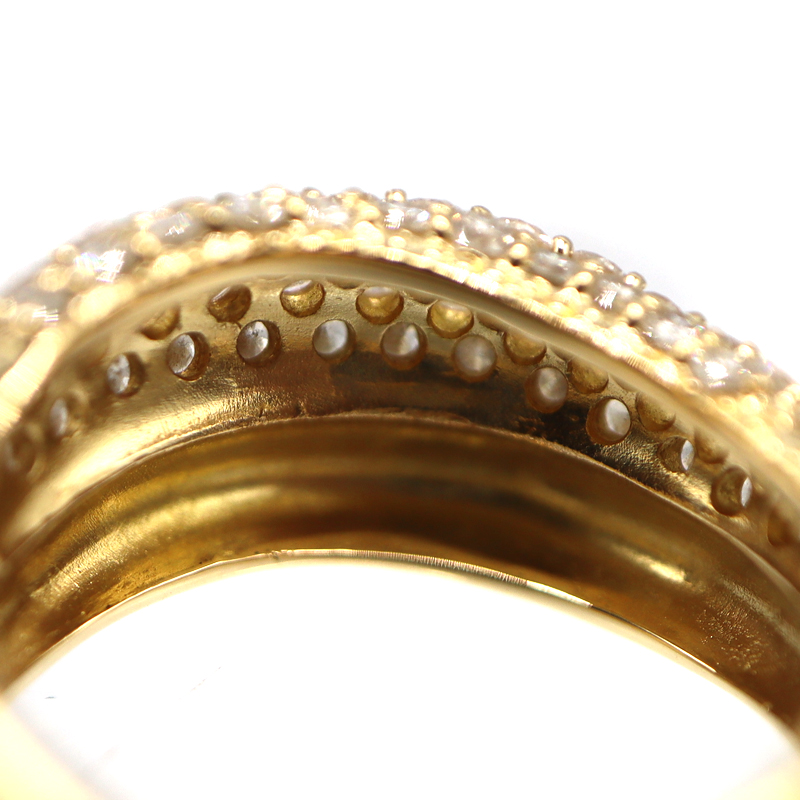 0.76カラットのダイヤモンドをあしらった、K18イエローゴールド製のリングです。