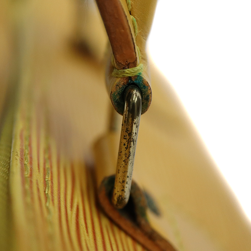 商品状態 | ■角スレあり。 ■バッグフチ部分全体的にスレあり。 ■ハンドル黒ずみ汚れ・キズあり。 ■金具黒ずみ・サビあり。 ■バッグ内毛羽立ちあり。 ■ハンドル糸浮きあり。 ■バッグ内古いニオイあり。 ■ファスナー裏側サビ汚れ(緑色に変色)あり。 ■店頭でも販売しているため、画像にないキズ等がつく可能性がありますので予めご了承くださいませ。 |