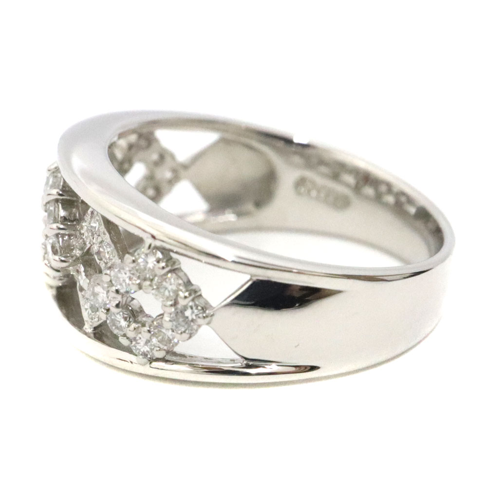 ダイヤモンドがはめ込まれた細かなデザインが特徴のリングです。 お手元を華やかにしてくれるアイテムとなります。 この機会に是非いかがでしょうか。