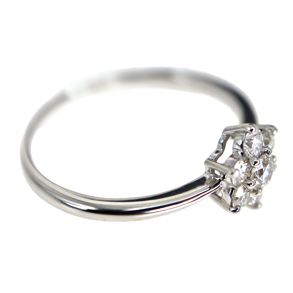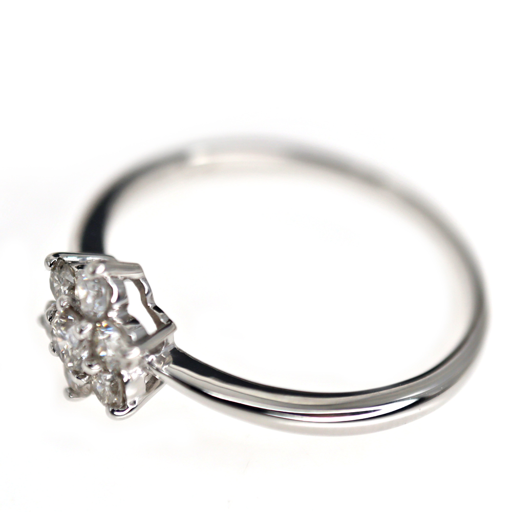 中央にセッティングされた花形のダイヤモンドが上品に輝くシンプルなリングです。 お手持ちのリングと合わせて重ね付けしてお楽しみいただけます。