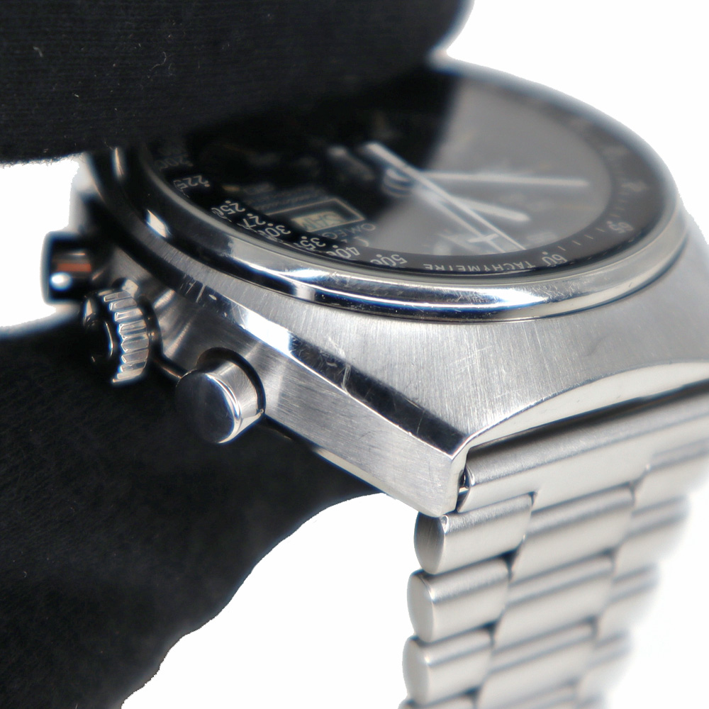 商品説明 | OMEGA【オメガ】 ST176.0012 スピードマスターマーク4.5 の紹介です。 オメガの中でも人気の高いモデル、スピードマスターです。 このスピードマスターMark4.5は、「Mark4」と「Mark5」の移行期間に製造され、Mark4のケースデザインとMark5の搭載ムーブメントであるCal.1045が合わさったモデルです。 Cal.1045はレマニア製のCal.5100がベースとなっており、Cal.5100は様々な名ブランドが採用し軍用時計にも採用されるほど頑丈で、1978年から2000年代までの長期間製造されてきたレマニア社最高傑作とも言えるムーブメントです。