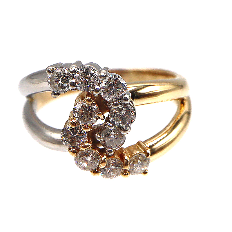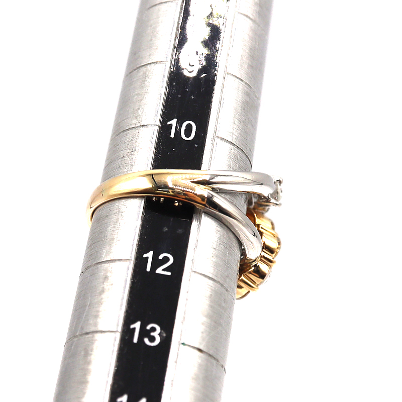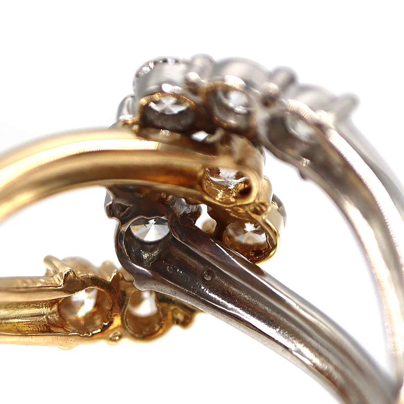 K18×Pt900のコンビ素材が美しい高級感を放つダイヤモンドリングです。