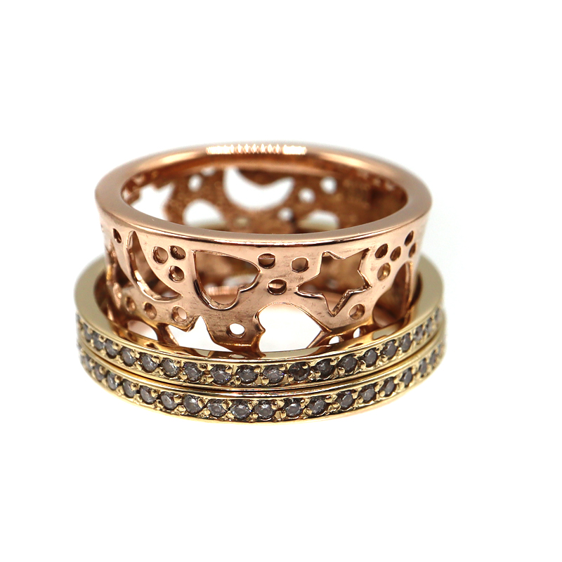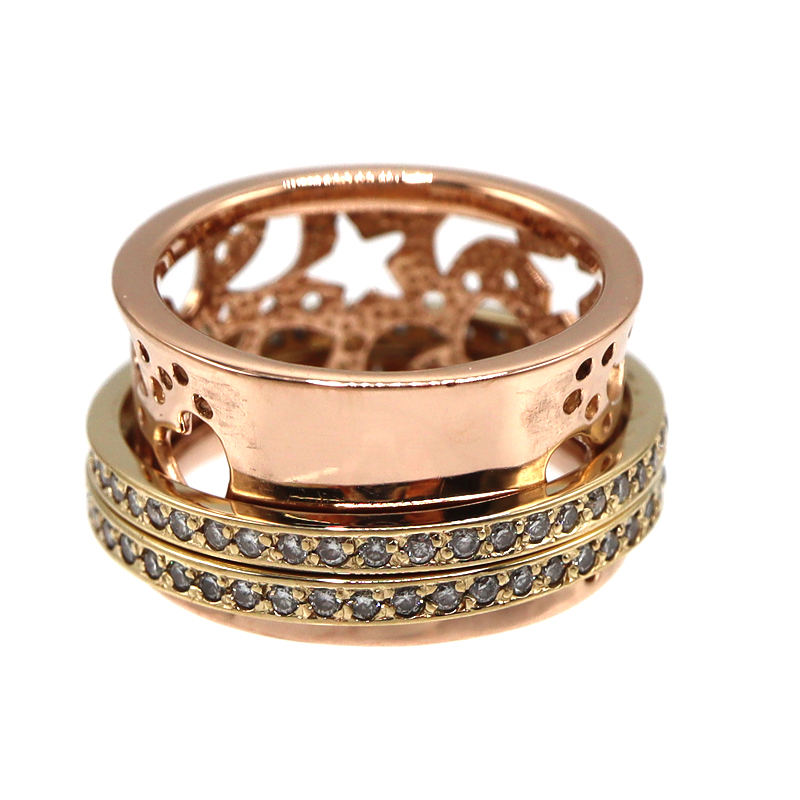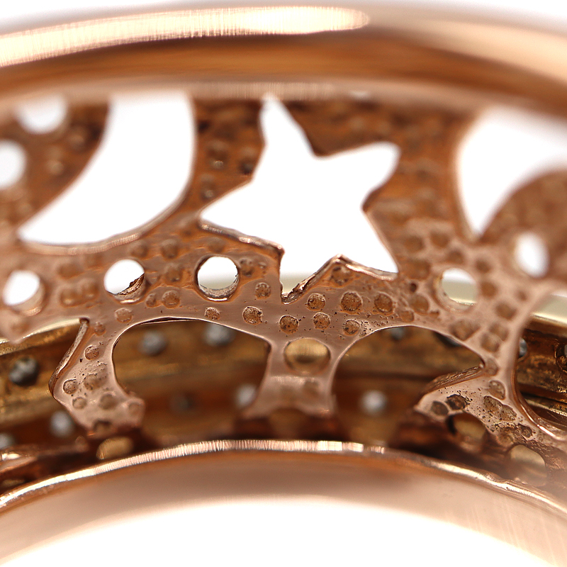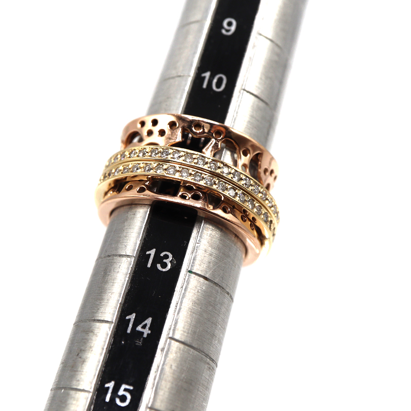 温かみのあるピンクゴールドに、合計0.65ctのダイヤモンドを贅沢にあしらったリングです。