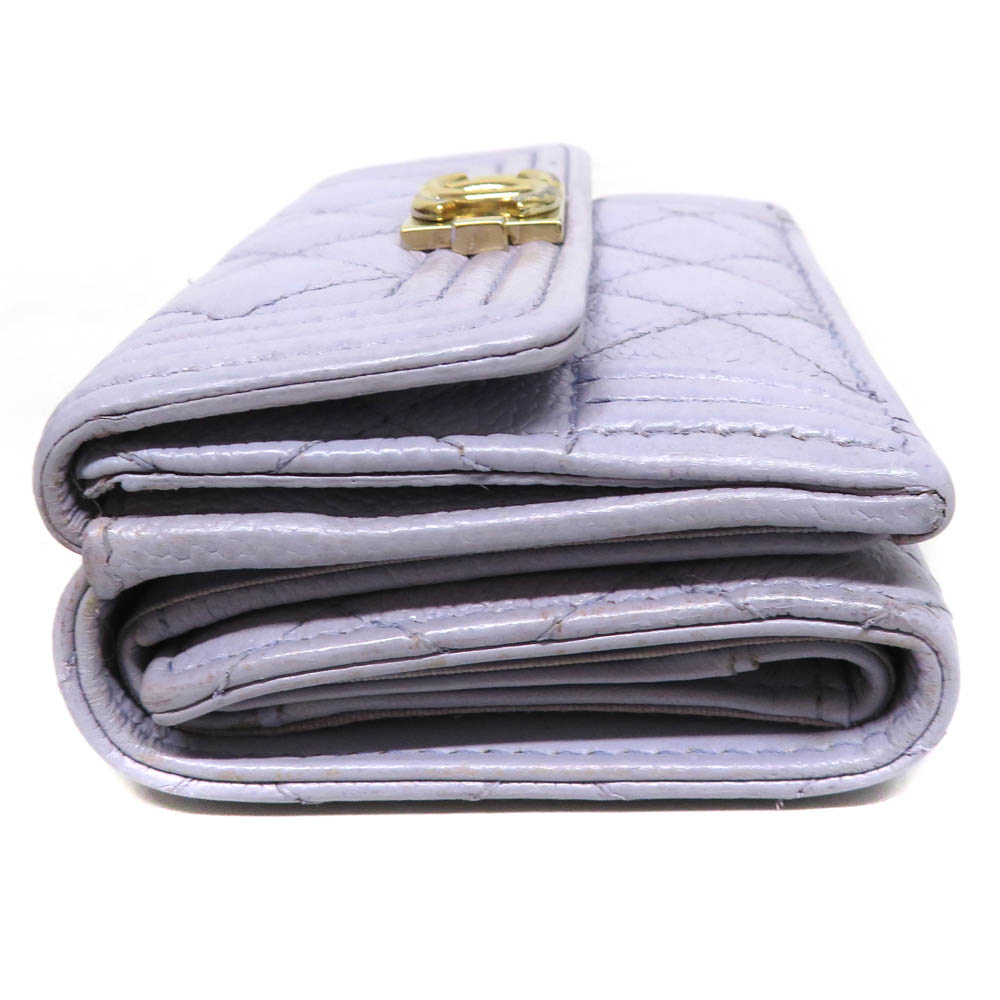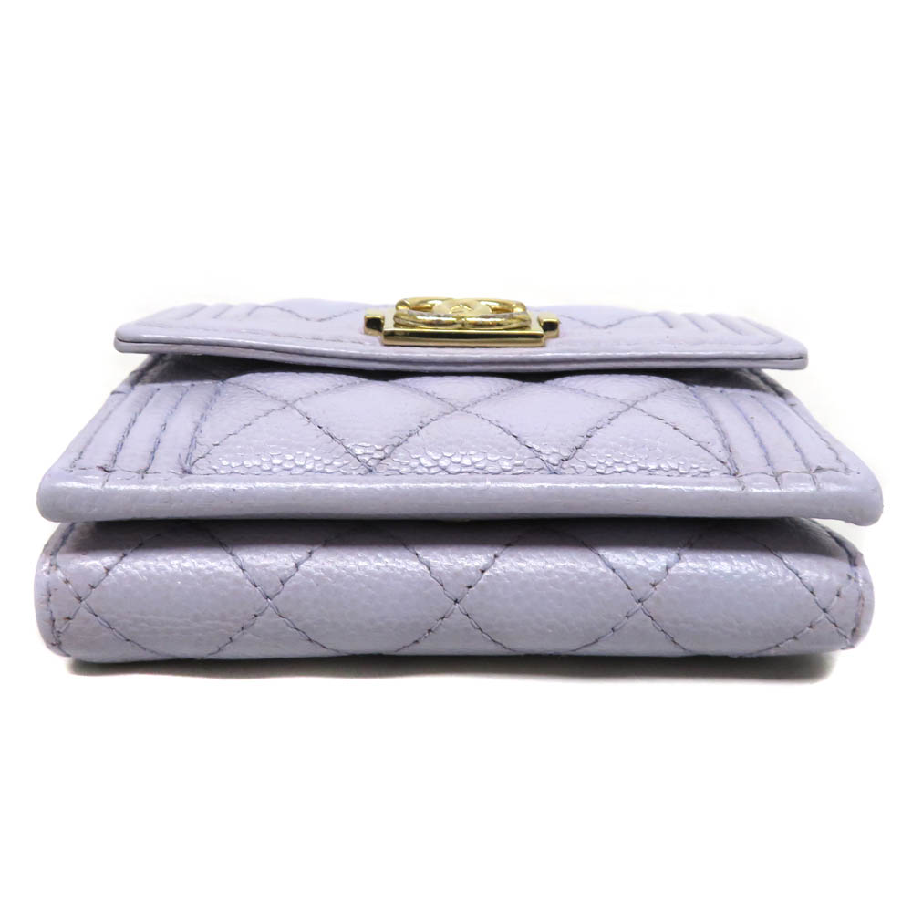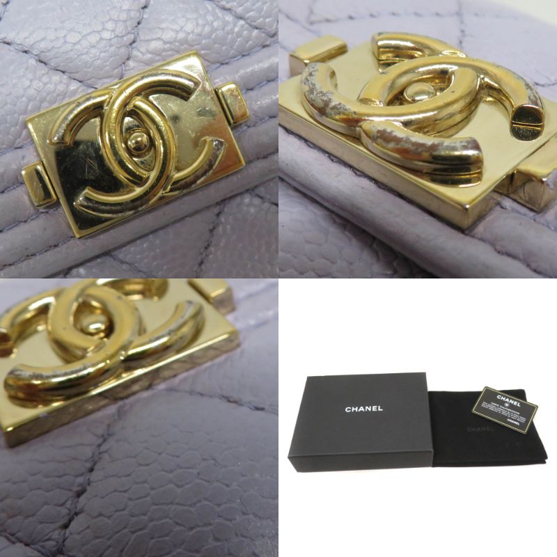 淡いパープル系のレザーにボーイシャネルの金具がオシャレなデザインです。