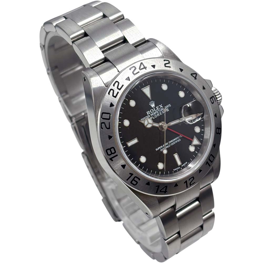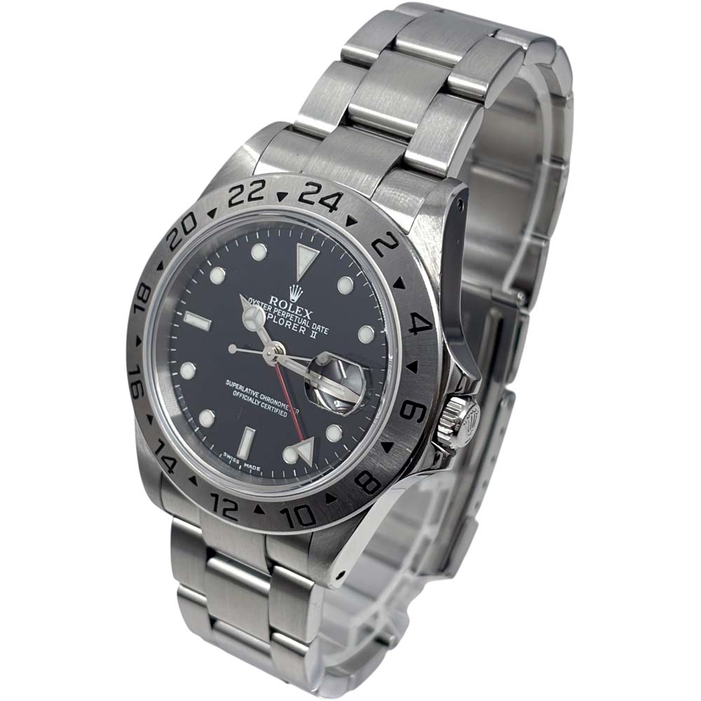 商品説明 | ロレックスのエクスプローラー2(モデル番号16570)は、探検家のために設計された時計です。24時間表示のGMT機能を備え、ブラックまたはホワイトのダイヤルから選べます。耐久性が高く、ステンレススチールを使用した堅牢な構造が特徴です。視認性を考慮した蛍光インデックスと針が採用されており、暗所での視認性も良好です。自動巻きムーブメントを搭載し、日常生活や冒険の様々なシーンで信頼性を発揮します。