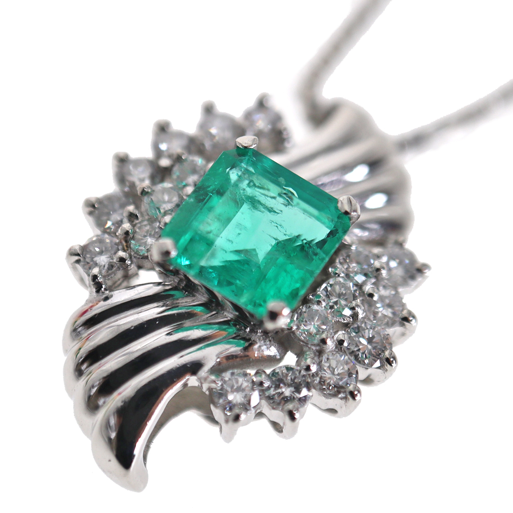 | 素材 | チェーン:Pt850【プラチナ850】 トップ:Pt900【プラチナ900】 エメラルド0.69ct ダイヤモンド0.36ct |