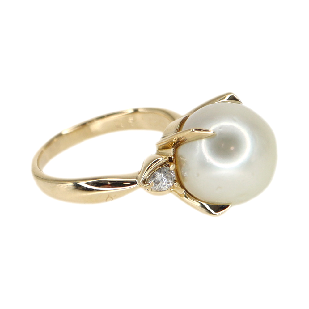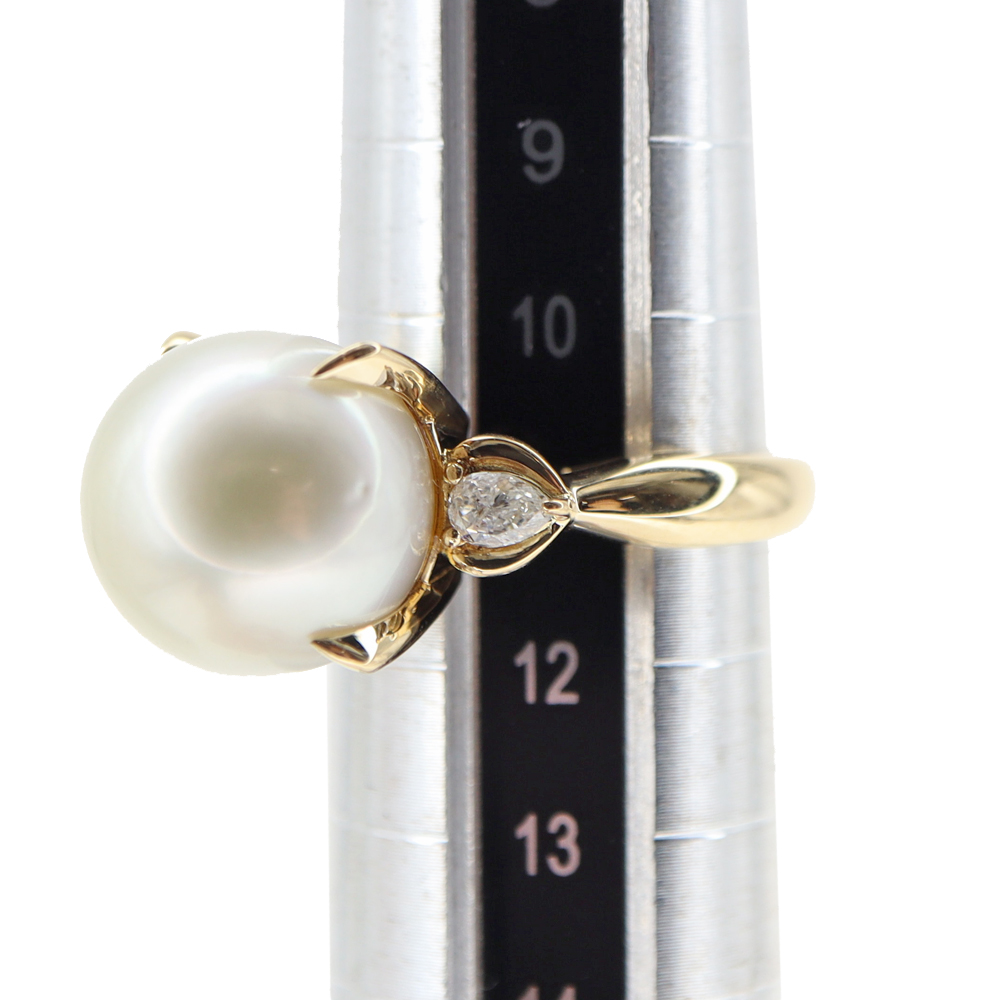大きなパールが中央にセッティングされたゴージャスなリングです。 サイドにはダイヤモンドも施されているので、より華やかな印象を与えてくれます。 つやのあるパールが目を惹くアイテムとなっており上品かつ高級感あふれたお品となっております。