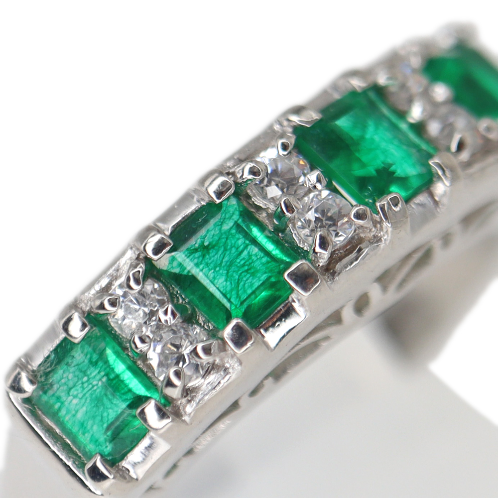鮮やかな緑色のクォーツァライトが目を惹くリングです、 シンプルなデザインなので、重ね付けで組み合わせてもお楽しみ頂けます。