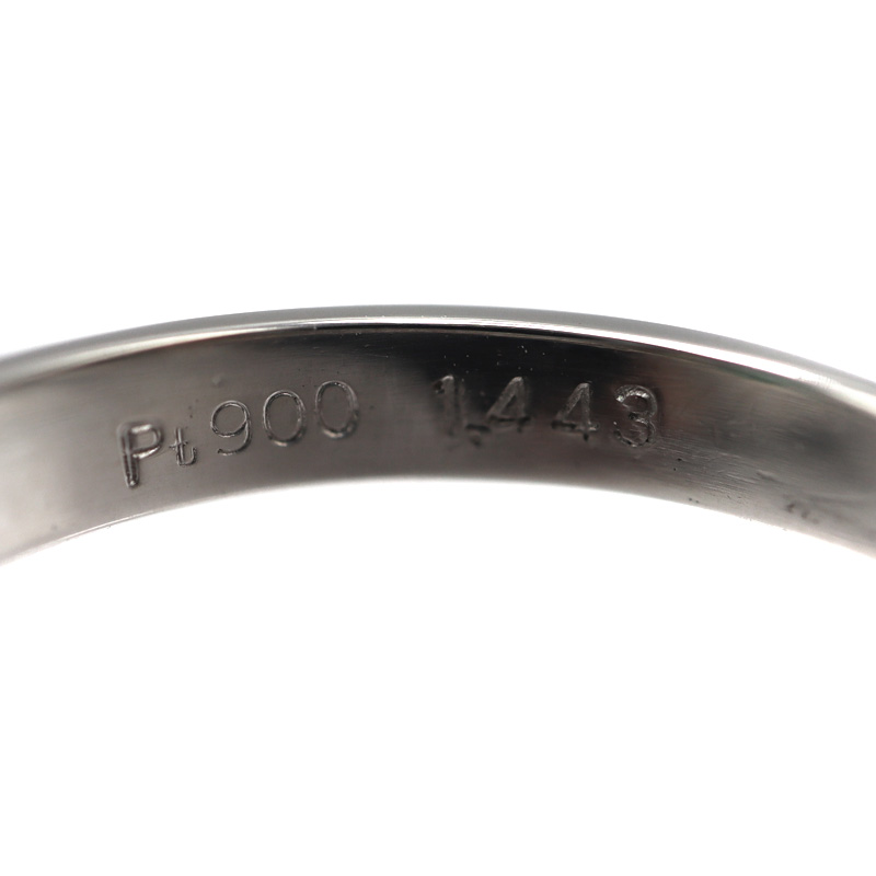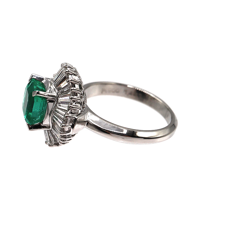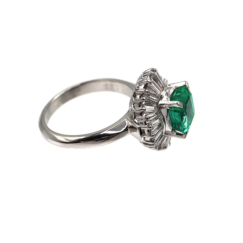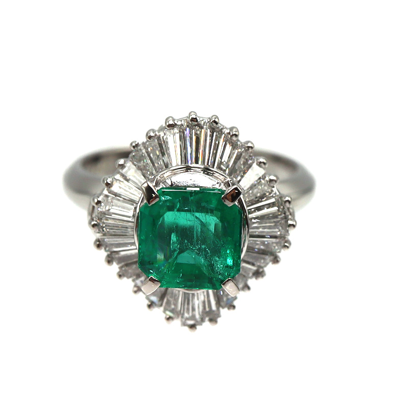 上質なプラチナ900に、鮮やかなグリーンが印象的なエメラルド1.443ctをセットしたリングです。